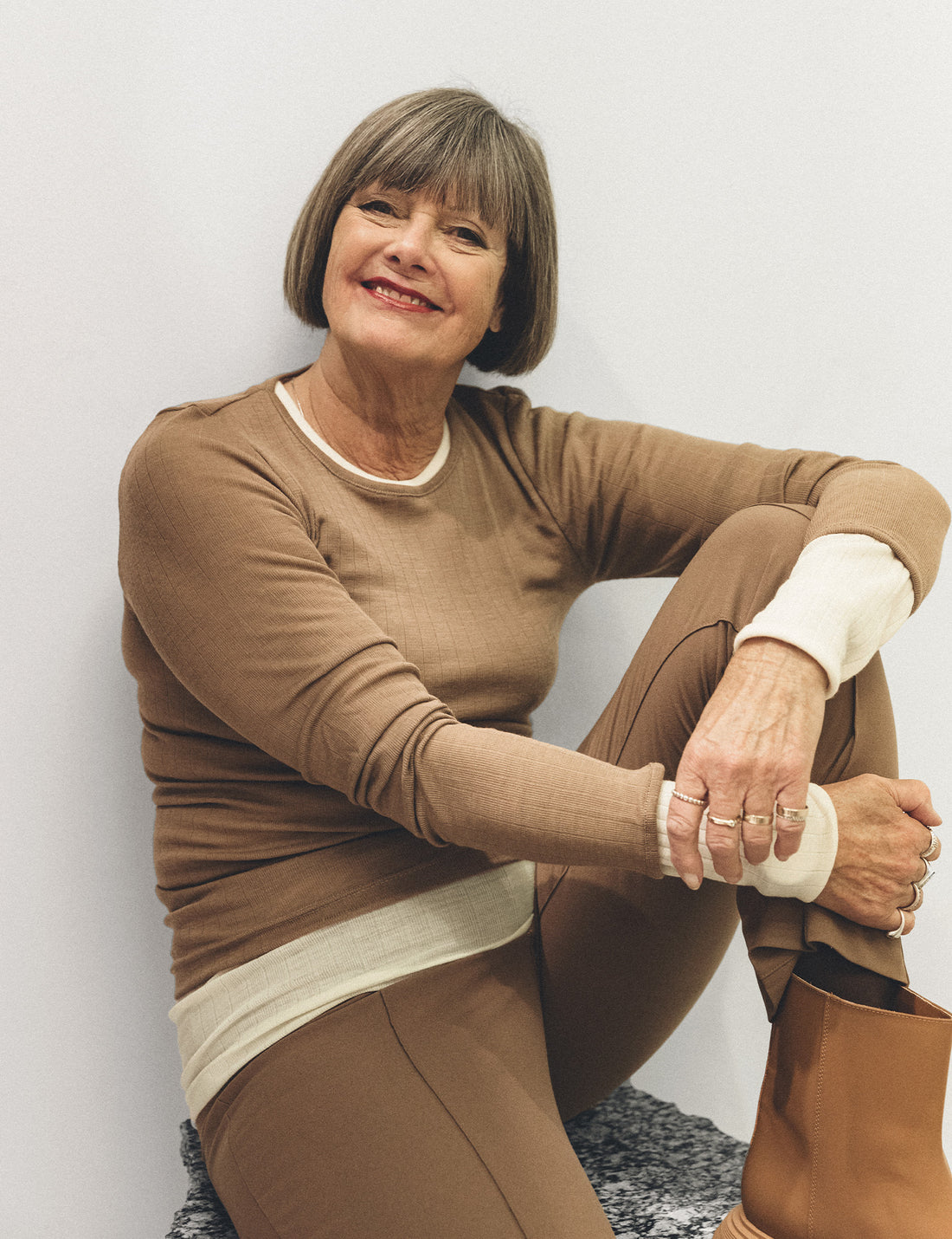 Christa er iklædt vores #101 i 100% uld, syet på vores systue i Danmark.