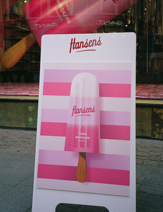 Torsdag den 27. marts kl. 15.00 kan besøgende i Nørgaard paa Strøget i København og Mads Nørgaard - Copenhagen i Aarhus være de første til at smage den nye Nørgaard Pop fra Hansens. Ud over gratis is er der også mulighed for at købe den specialdesignede #101-t-shirt, der produceres i et begrænset antal og kan købes i Mads Nørgaard - Copenhagens fysiske butikker og online.