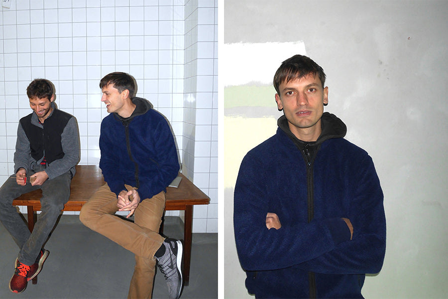 Vi mødte Eddie og Louis i deres nye lokaler på Nørrebro. Eddie er iklædt vores nye 'Traktor' Fleece-trøje, den kan købes HER.