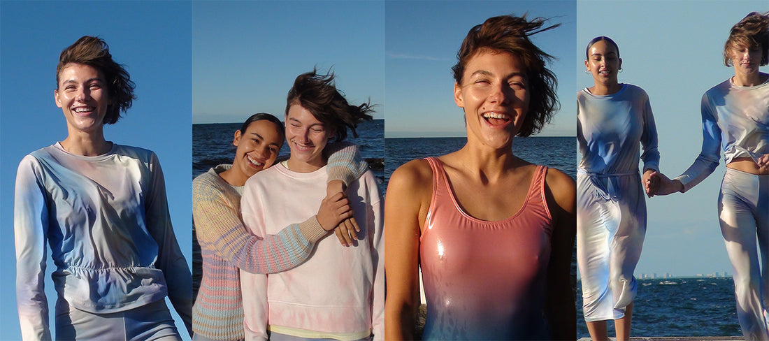 Vi tog kollektionen med til stranden og så solnedgangen.