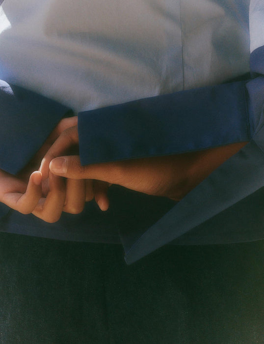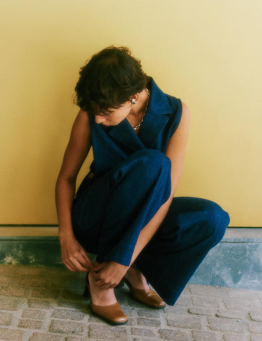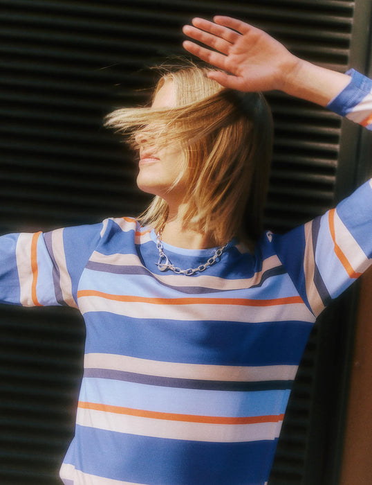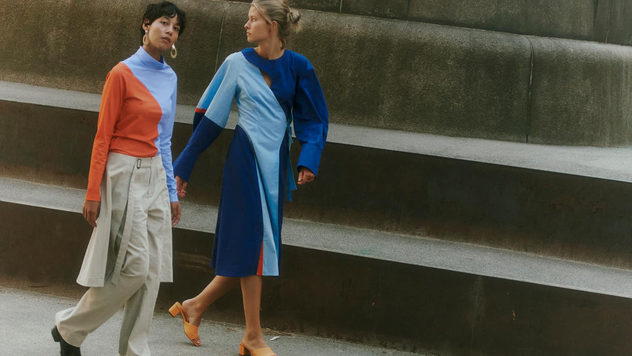 ”Vibes leg med striber, pasform og fokus på godt håndværk fangede min opmærksomhed. Hun rammer et både ungt og modent udtryk til alle kropstyper. Det faldt jeg pladask for. Vi er meget stolte over at kunne hjælpe Vibes karriere på vej” – Mads Nørgaard