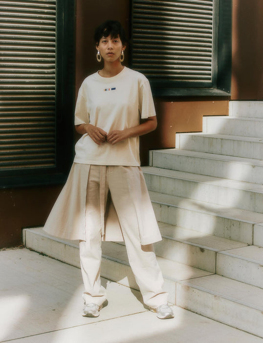 Mads Nørgaard – Copenhagen står for kollektionens t-shirts, som er produceret lokalt hos mikrofabrikken Rodinia i Københavns Nordvest og syet i Ikast. Sammen lancerer Magasin og Mads Nørgaard den fulde kollektion i egne butikker.