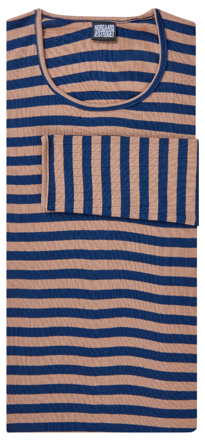 LÆS MEREVi er meget stolte over at producere vores #101 t-shirt i Danmark. Nørgaard t-shirten er designet af Jørgen Nørgaard i 1967, siden da er der solgt over 3 millioner eksemplarer af den populære t-shirt. Den smukke bomuldsrib bliver stadig strikket i Ikast og senere syet på vores systue i Korsør. Vi bruger kun certificerede BCI-garner (Better Cotton Initiative) til #101.