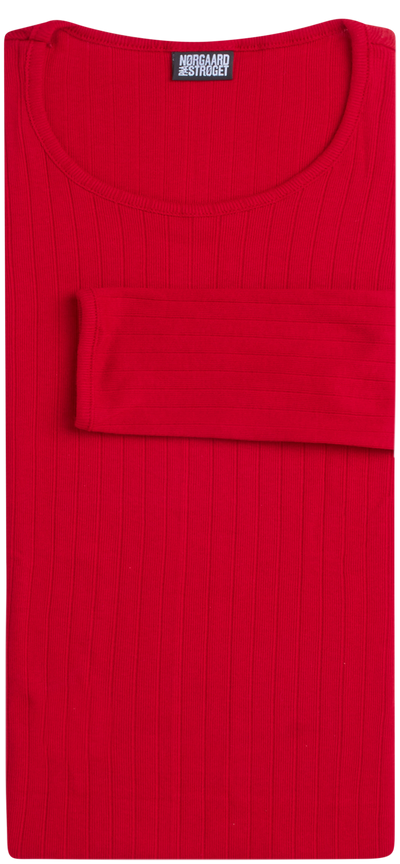 #101 var tænkt som en tilgængelig og prisvenlig basis til alle. Verden er i konstant forandring – men nogle ting skal forblive de samme. I dag bliver den ribstrikkede langærmede t-shirt stadig produceret lokalt i Danmark: strikket i Ikast, farvet i Herning og syet på vores systue i Korsør. Stadig one-size, blød, behagelig og af #100 BCI-bomuld.