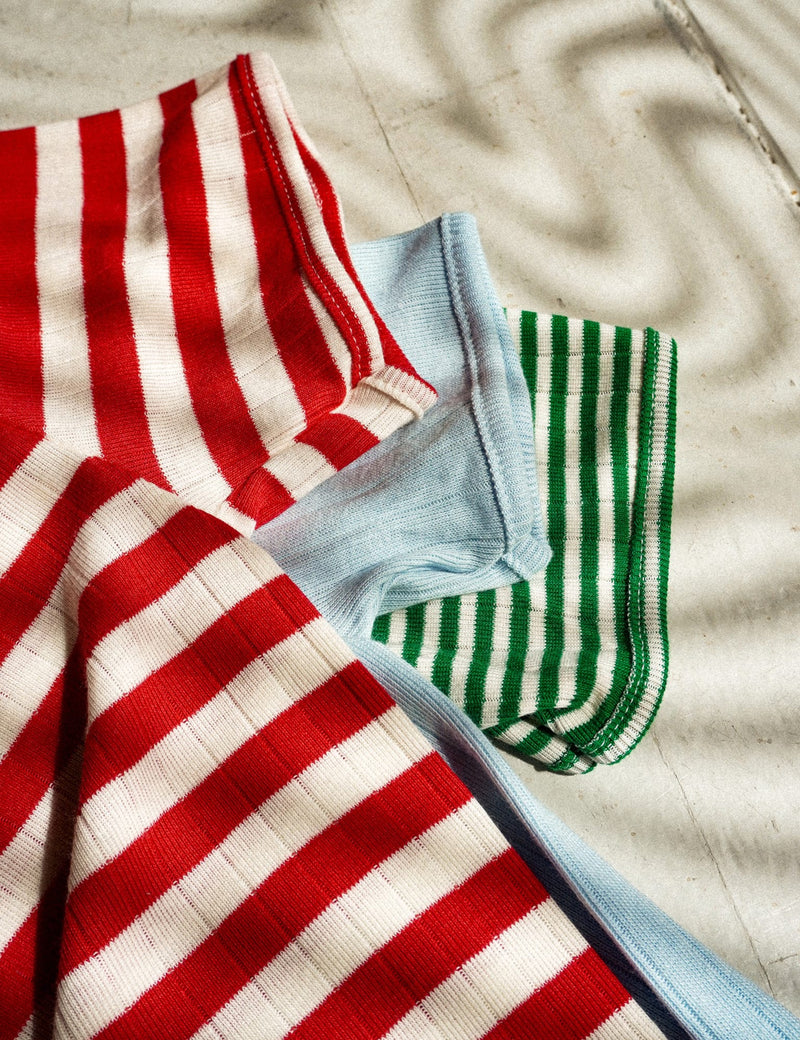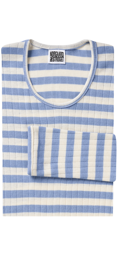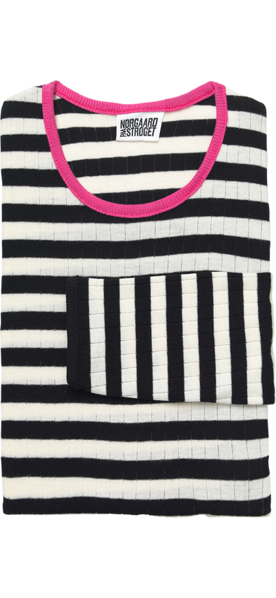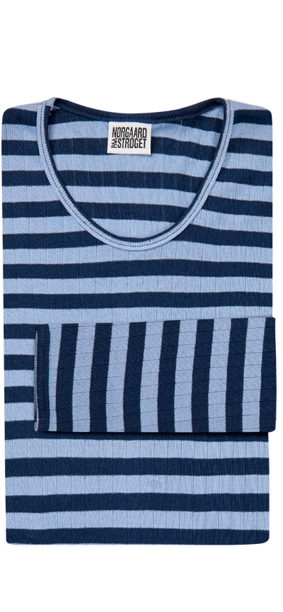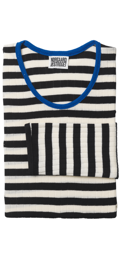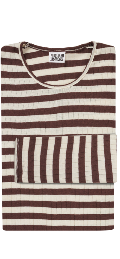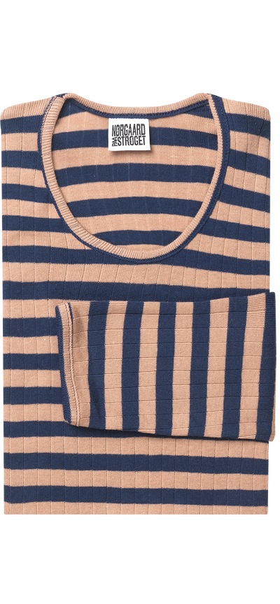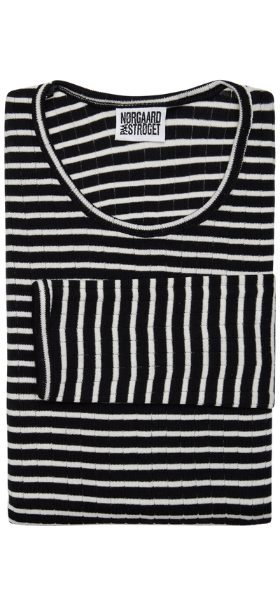 Fællesnævneren for alle produkter i Nørgaard paa Strøget kollektionen, er at de bliver strikket i Ikast og syet på vores systue i Korsør og at de kommer i en bred variation af farver og striber.