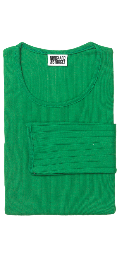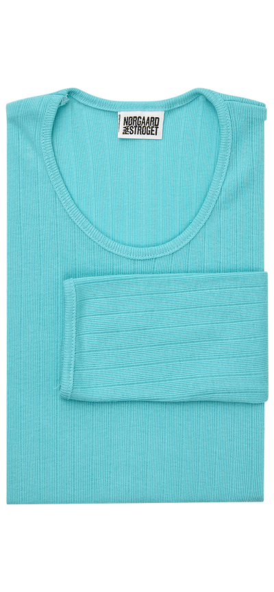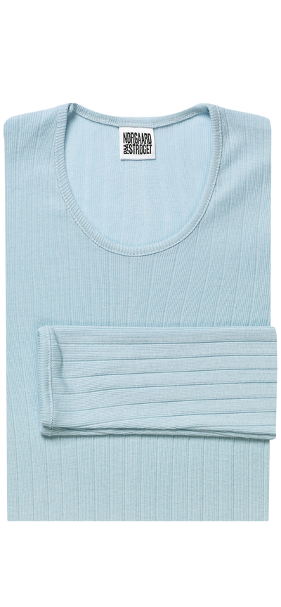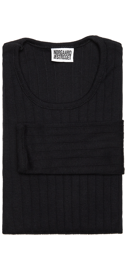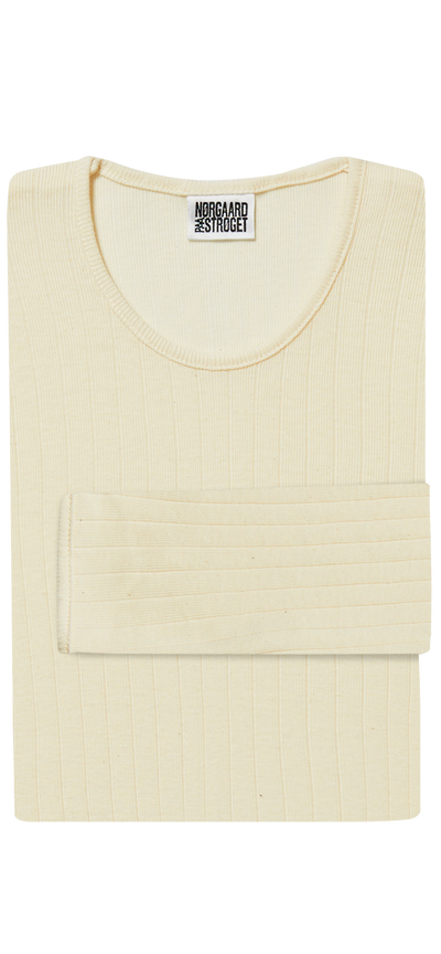 #101 var tænkt som en tilgængelig og prisvenlig basis til alle. Verden er i konstant forandring – men nogle ting skal forblive de samme. I dag bliver den ribstrikkede langærmede t-shirt stadig produceret lokalt i Danmark: strikket i Ikast, farvet i Herning og syet på vores systue i Korsør. Stadig one-size, blød, behagelig og af #100 BCI-bomuld.
