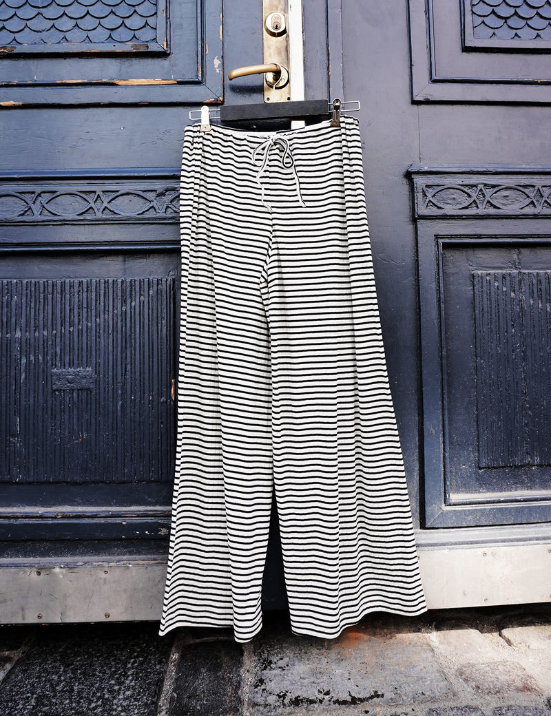 Nørgaard paa Strøget Nova Pants er en videreudvikling af den klassiske #101 t-shirt designet af Jørgen Nørgaard i 1967. De har løs pasform med snørelukning i livet og er syet på vores systue i Korsør. Stoffet er strikket i Ikast. NPS Nova Pants er one size, men kan fås i to forskellige længder.