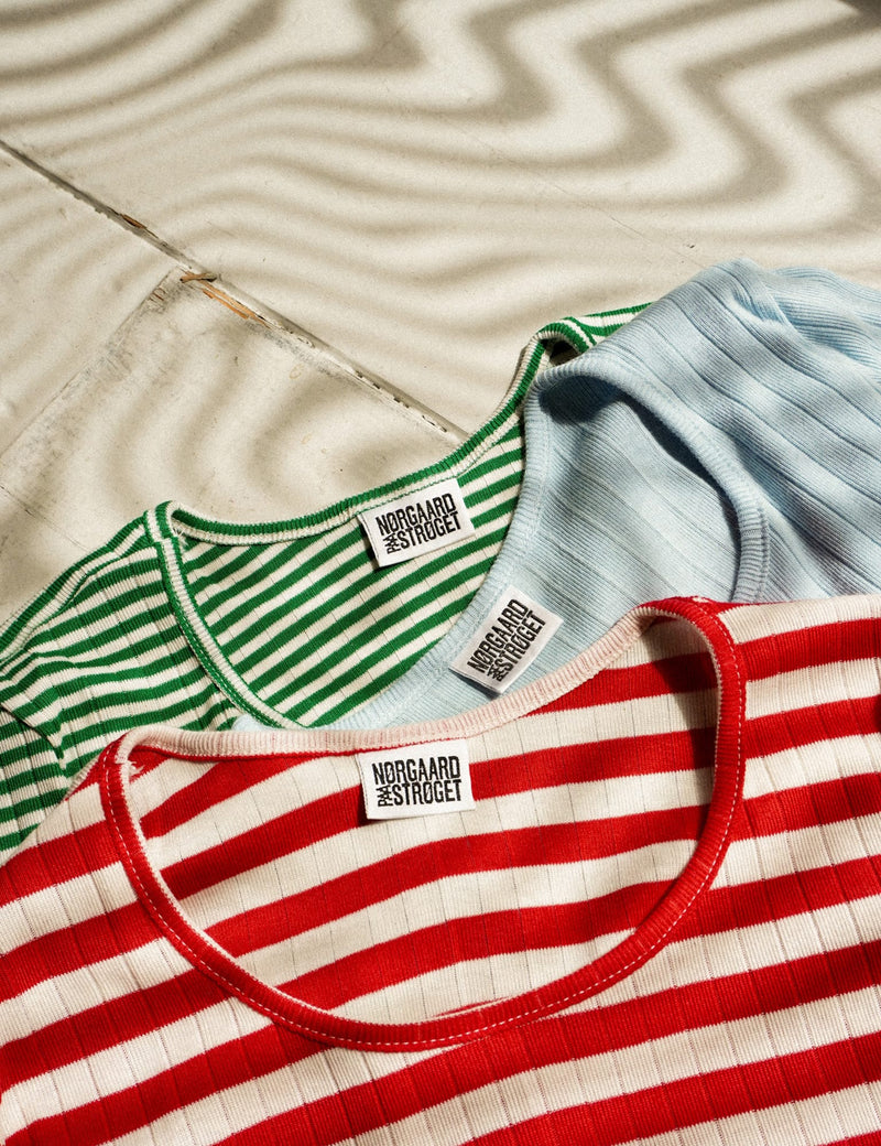 LÆS MEREVi er meget stolte over at producere vores #101 t-shirt i Danmark. Nørgaard t-shirten er designet af Jørgen Nørgaard i 1967, siden da er der solgt over 3 millioner eksemplarer af den populære t-shirt. Den smukke bomuldsrib bliver stadig strikket i Ikast og senere syet på vores systue i Korsør. Vi bruger kun certificerede BCI-garner (Better Cotton Initiative) til #101.