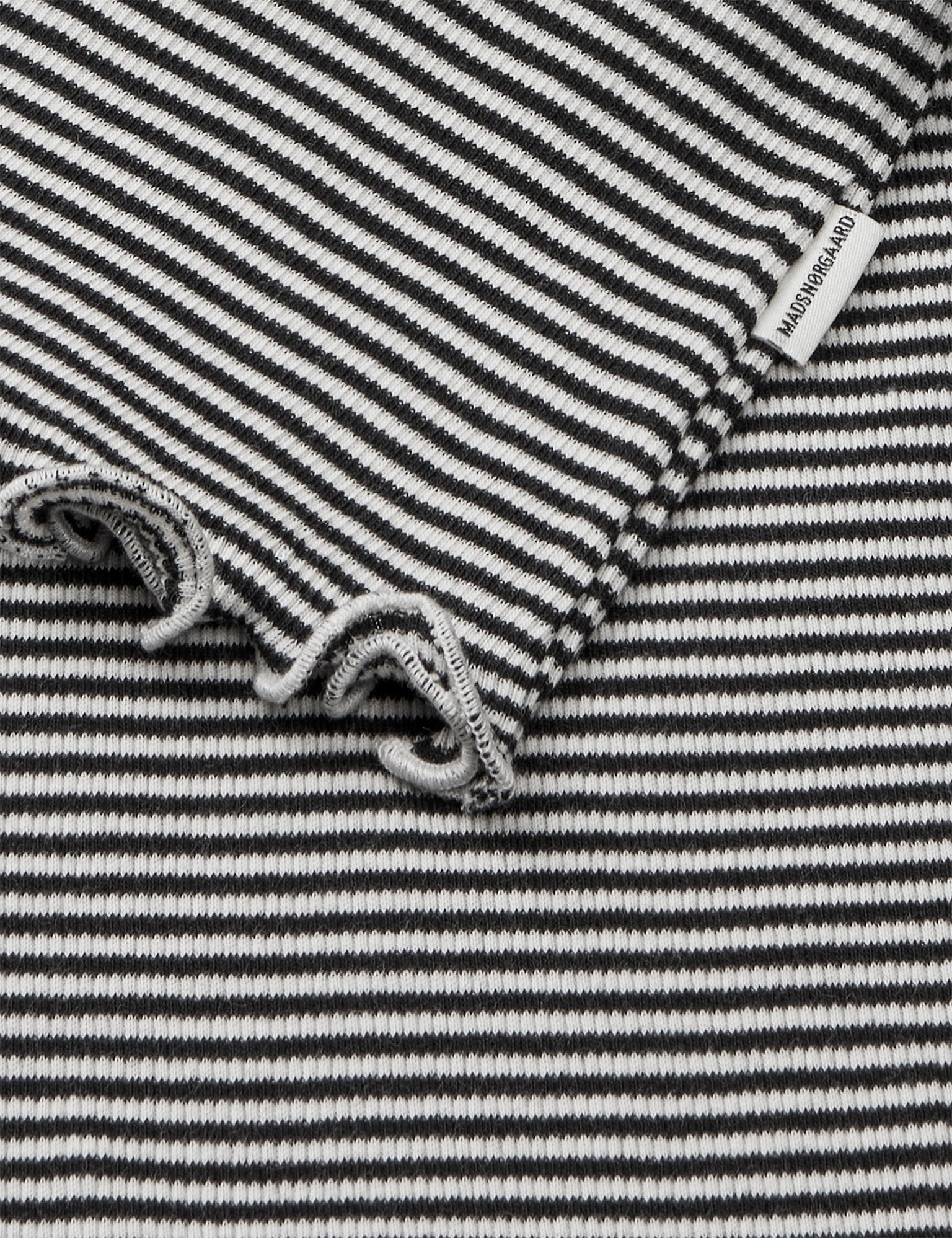 Blød, tætsiddende og stretchy T-shirt med V-udskæring med drapering og kanter, der krøller.