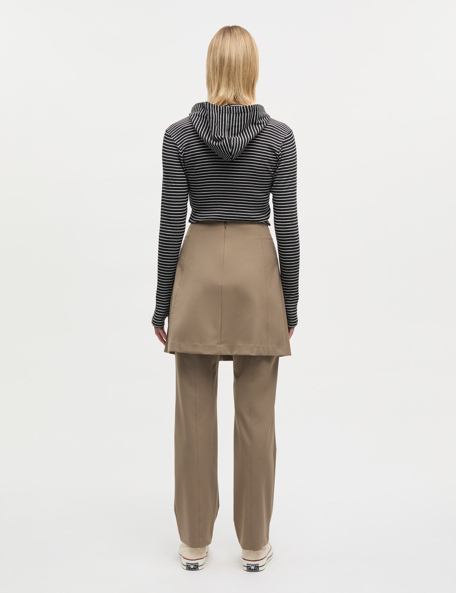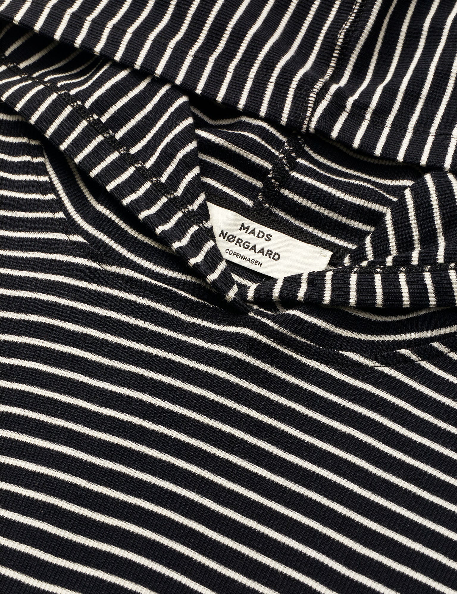 Langærmet T-shirt med hætte i ribstrikket jersey med smalle striber og tætsiddende pasform.