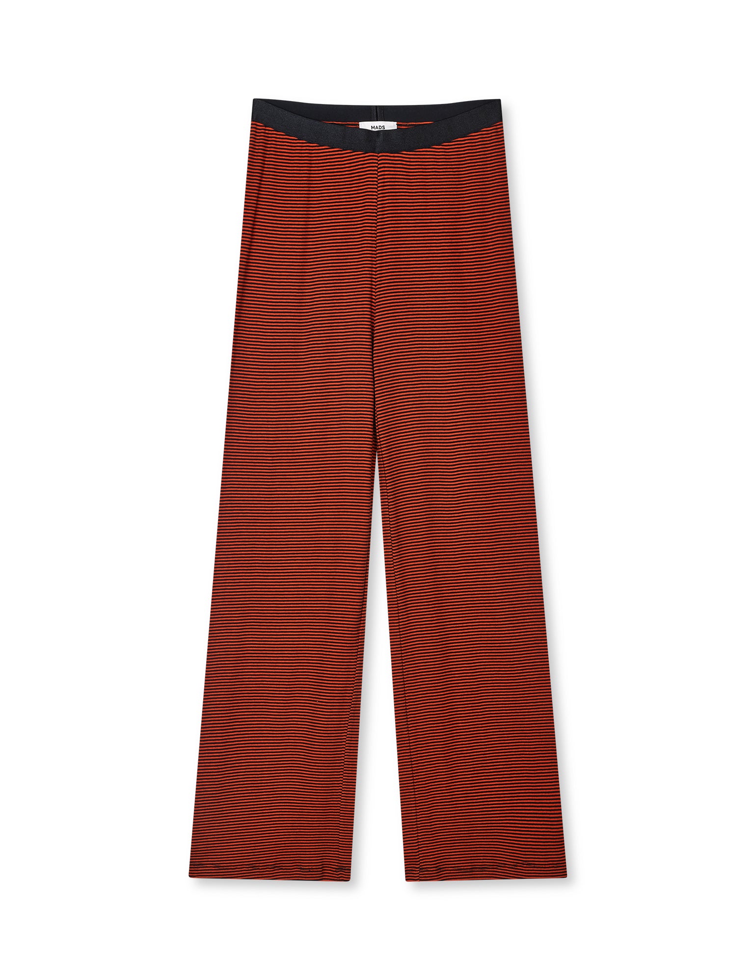 Stribet bukser i en blød stretchy bomuld. Bukserne har en bred elastik i taljen, som slutter til. Pasformen er højtaljet med vidde ben.