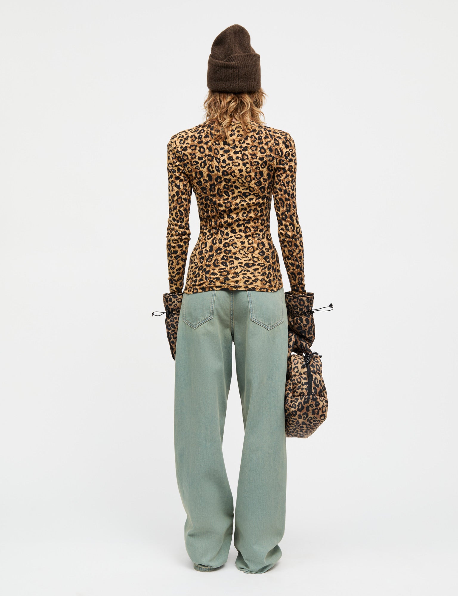 Tætsiddende og stretchy langærmet T-shirt med leopardpletter.