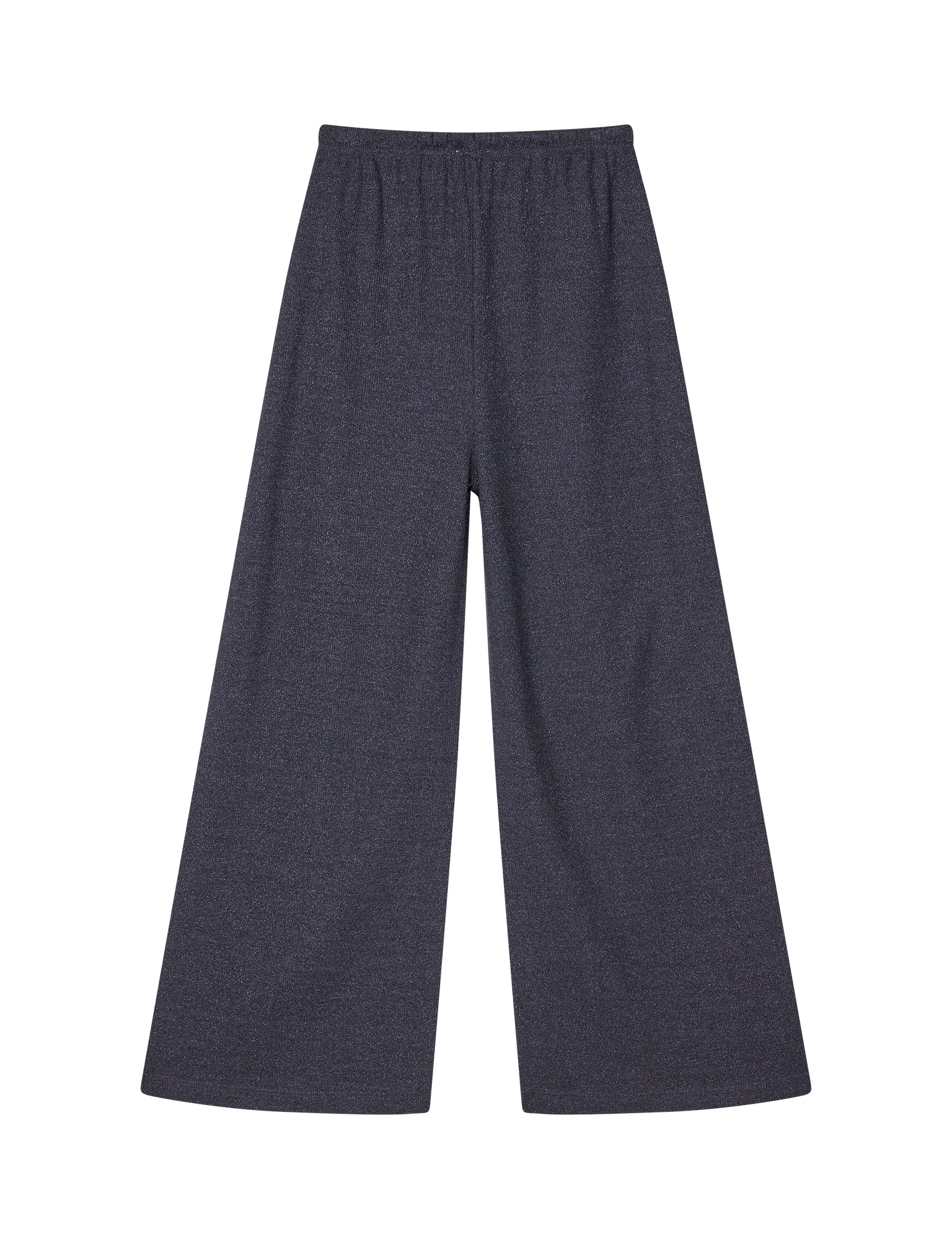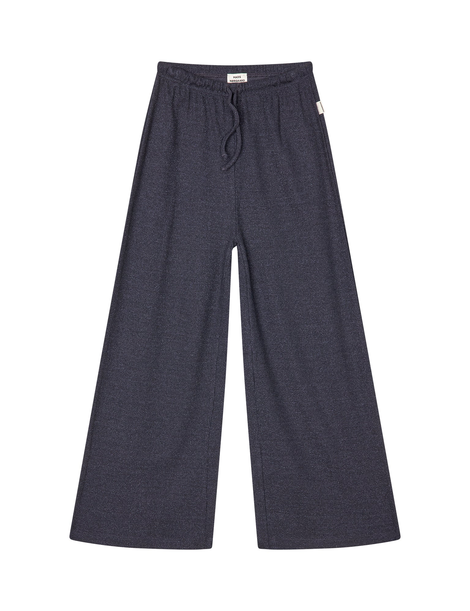 Løse, bløde bukser med brede, lige ben og elastisk linning med løbesnor.