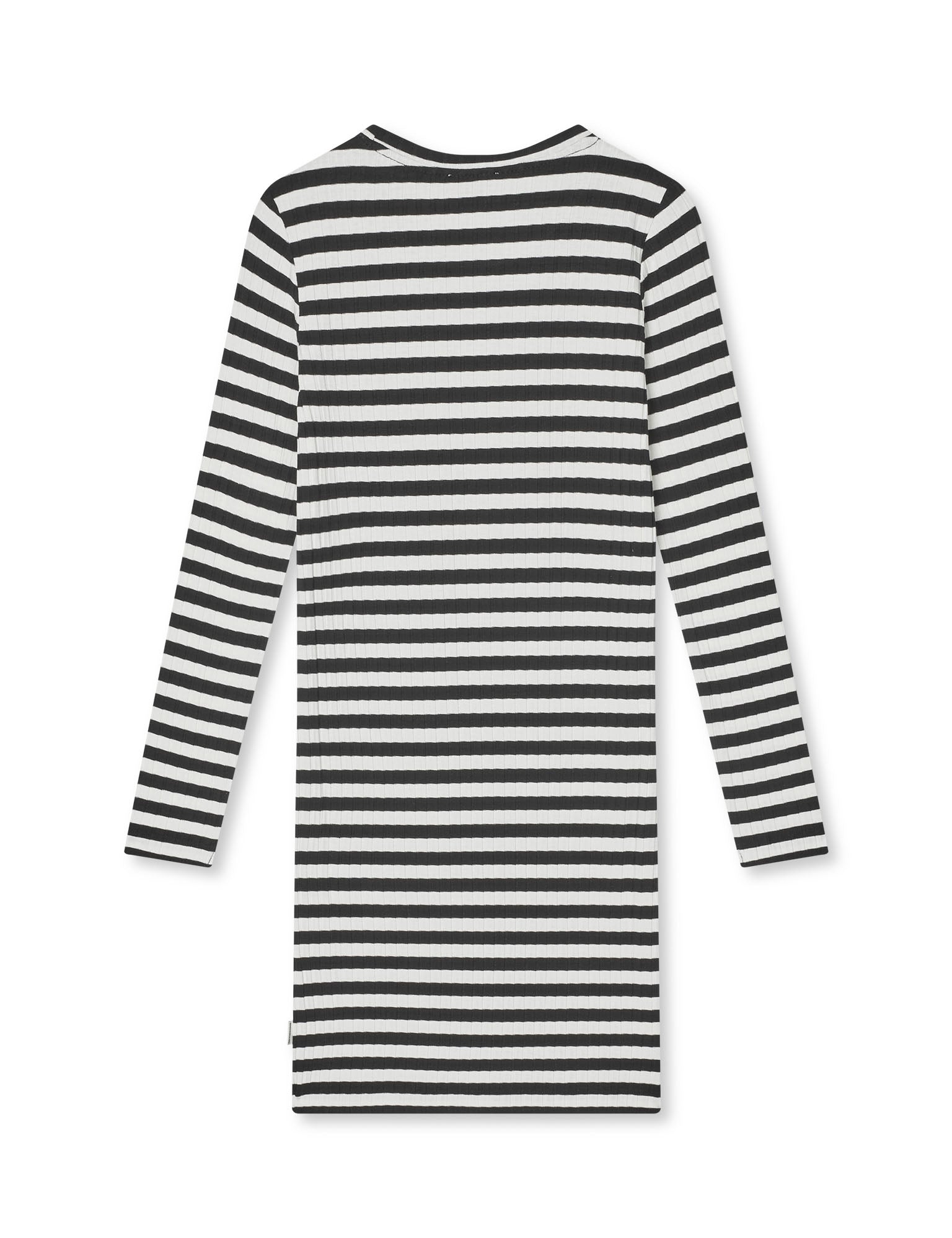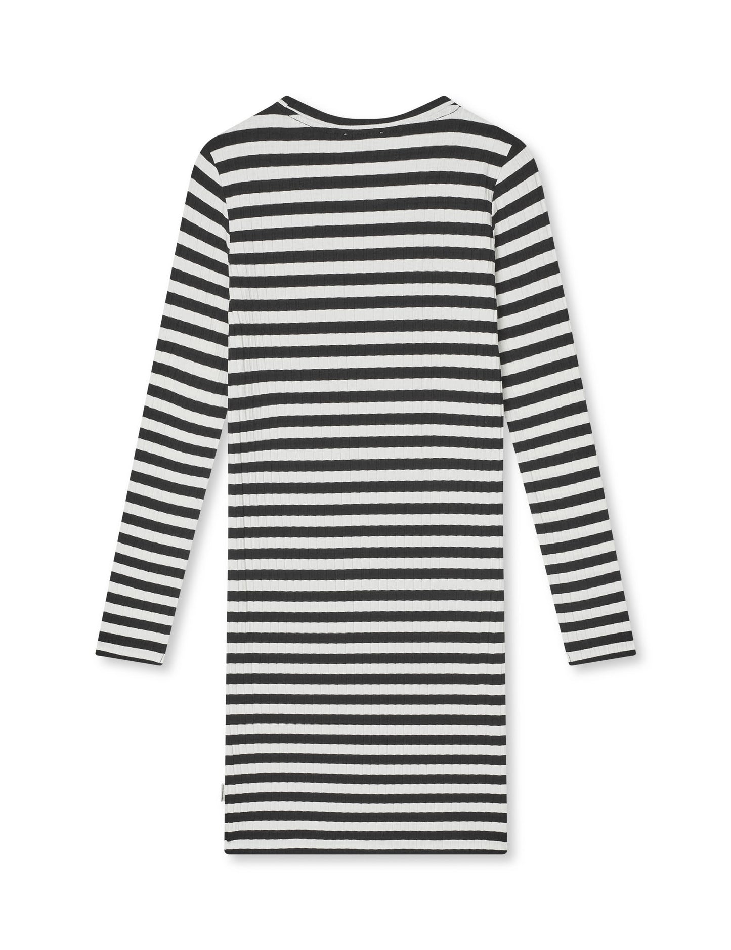 Blød, tætsiddende og stretchy lårkort kjole med rund hals.