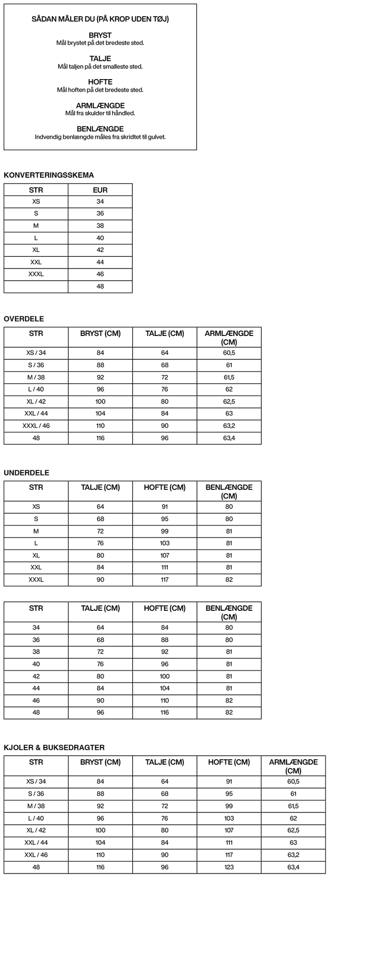 Målene er vejledende og kan variere afhængigt af materiale og pasform.