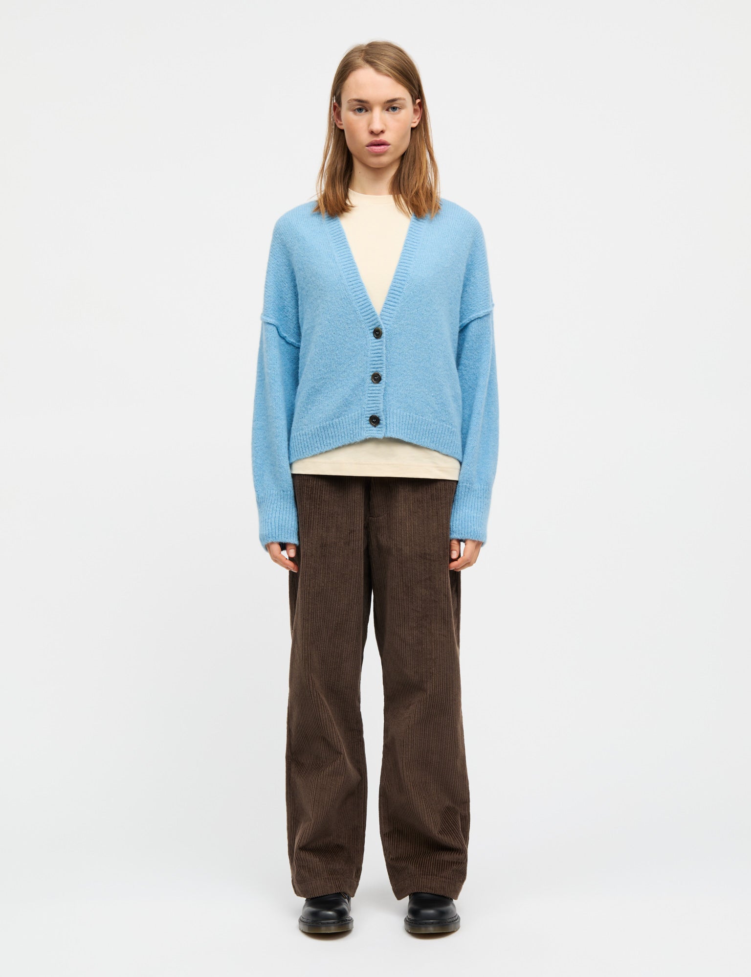 Oversized, blød cardigan med hængende skuldre, ballonærmer og V-udskæring.