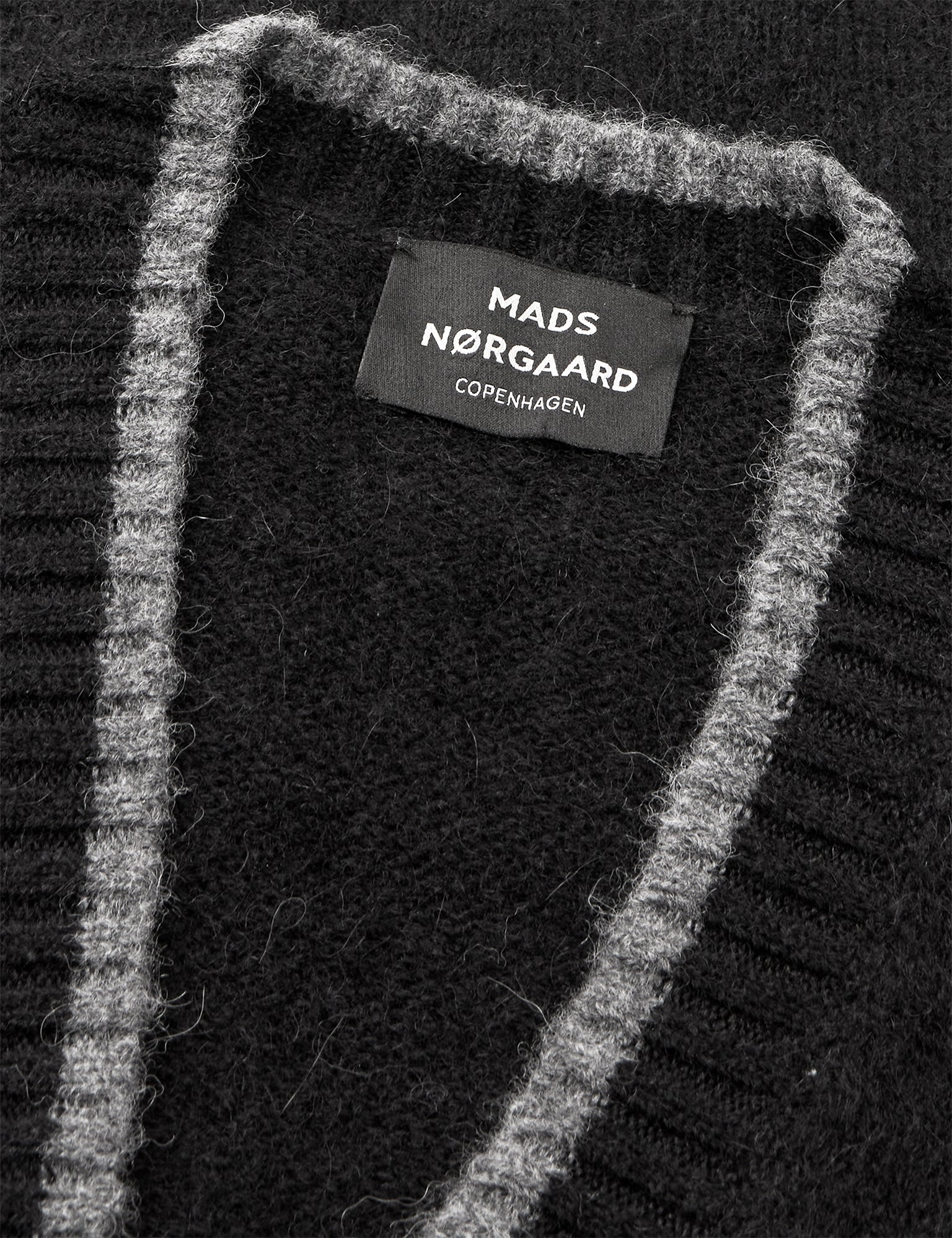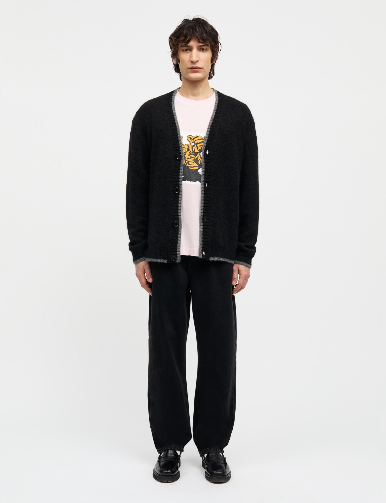 Blød og boxy strikcardigan med V-udskæring og strikkede ribkanter med kontraststrib.