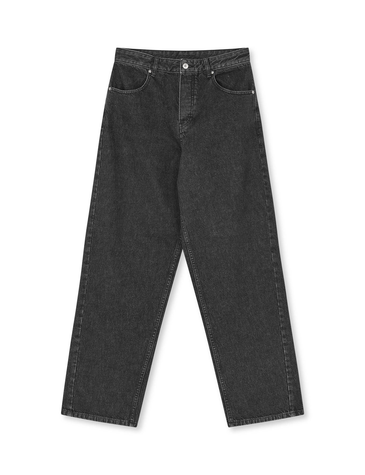Løse denim jeans i et lige snit med bæltestropper i linningen og fem lommer.