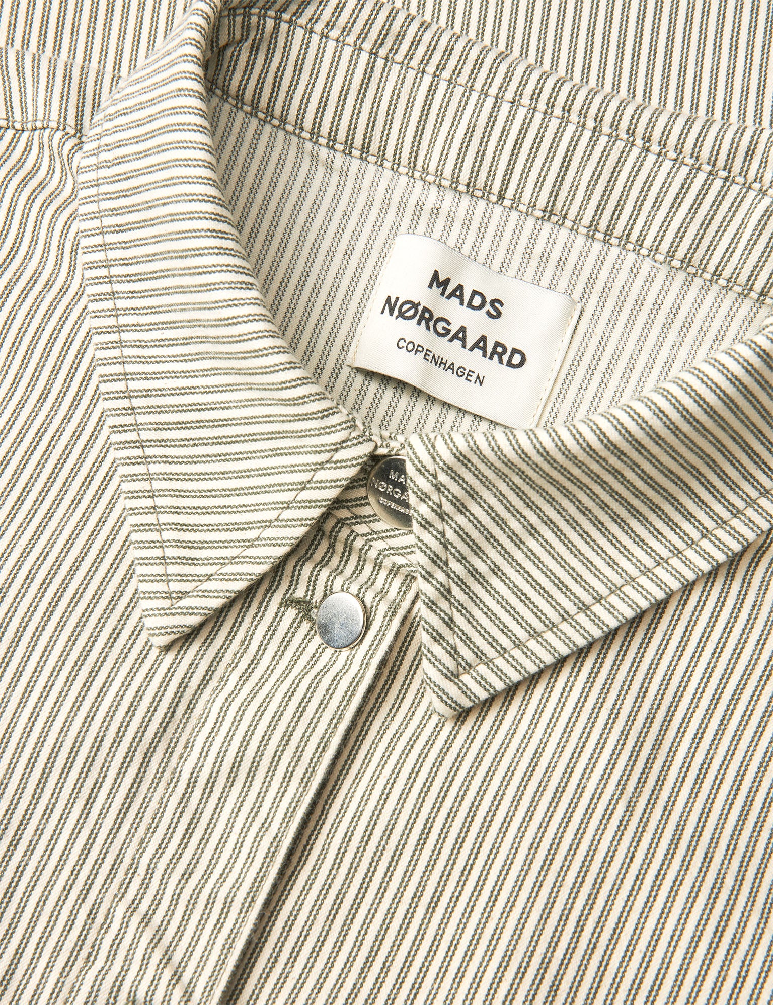 Skjortekjole med knapper hele vejen ned, bæltestropper, bindebælte og lille opsmøg på ærmerne.