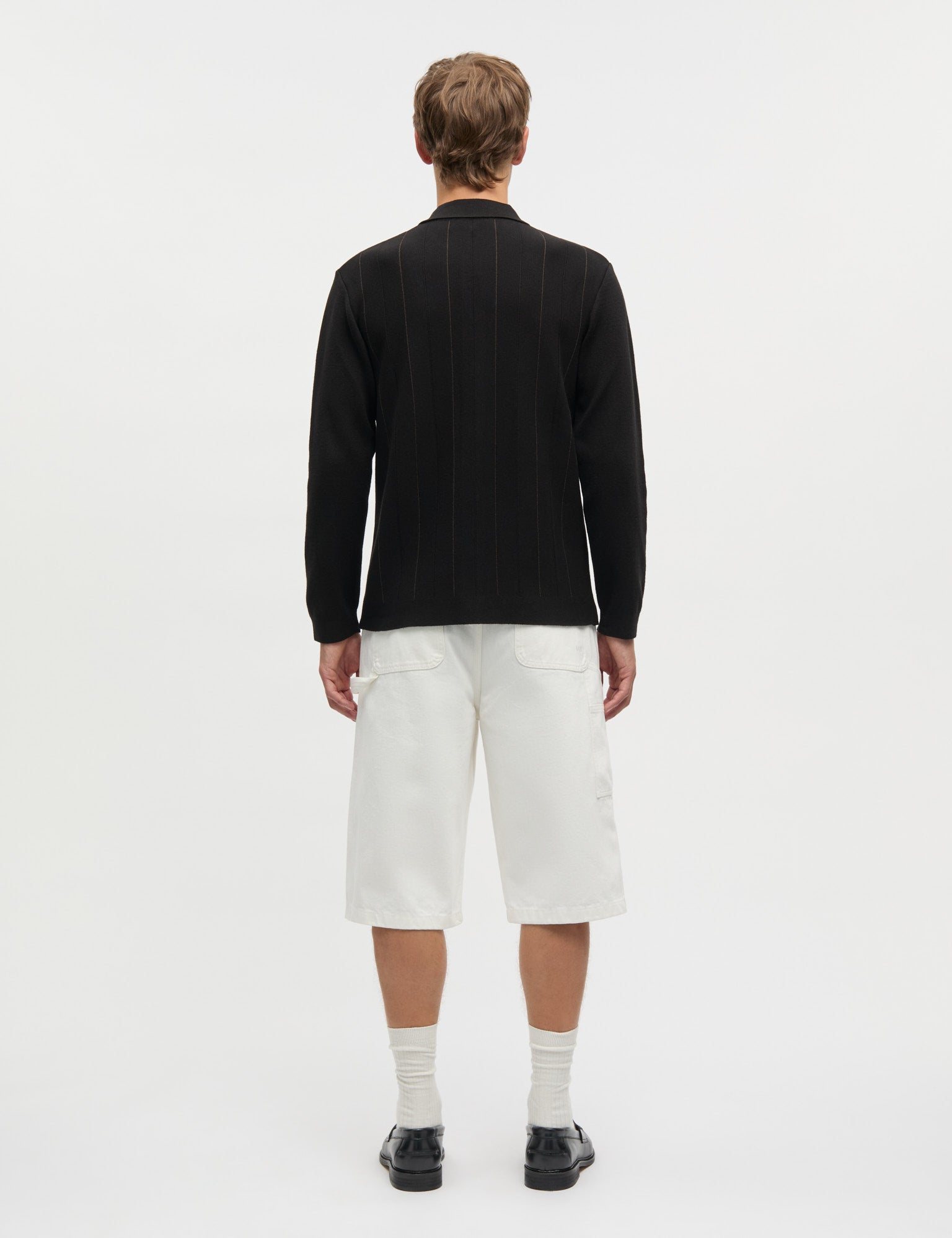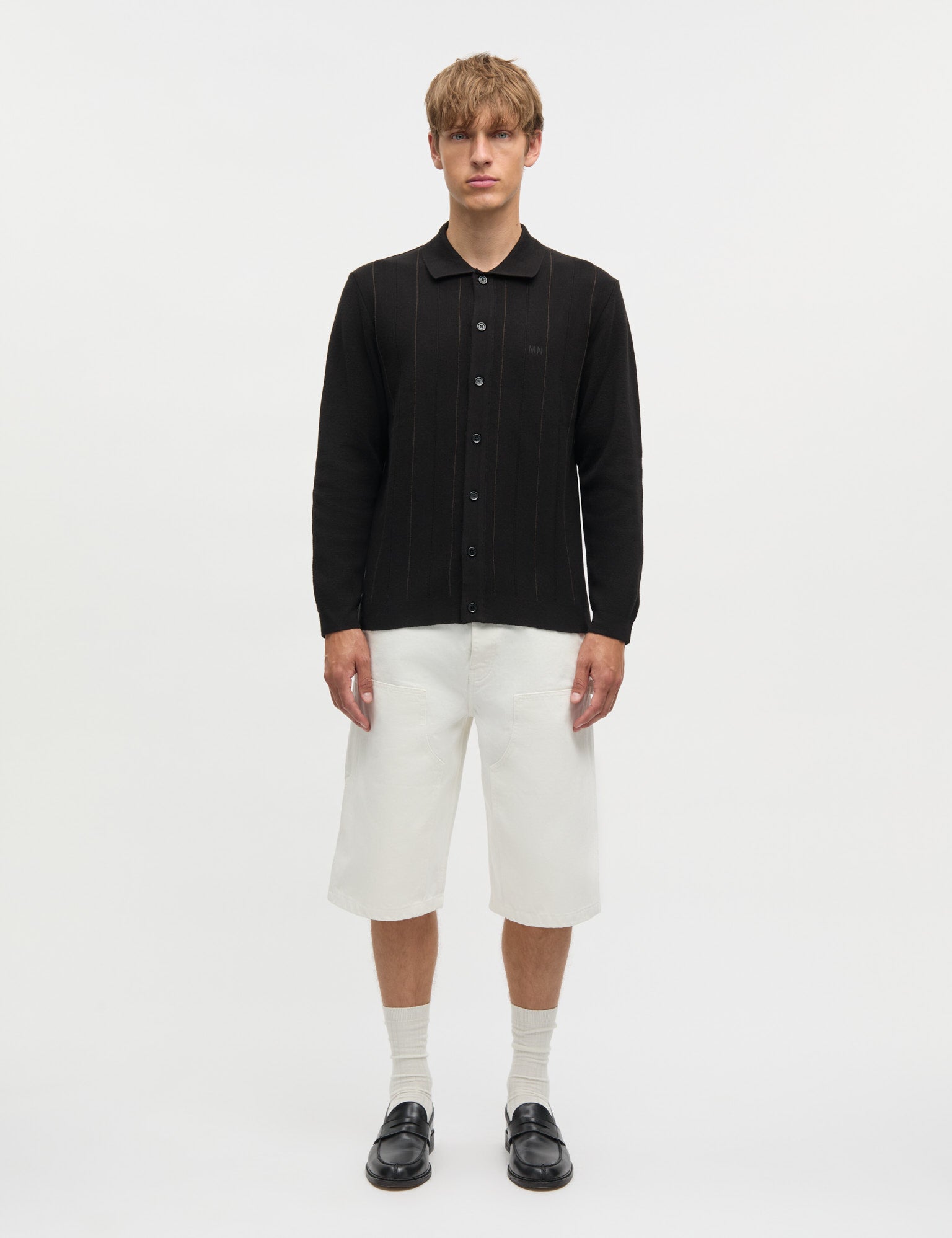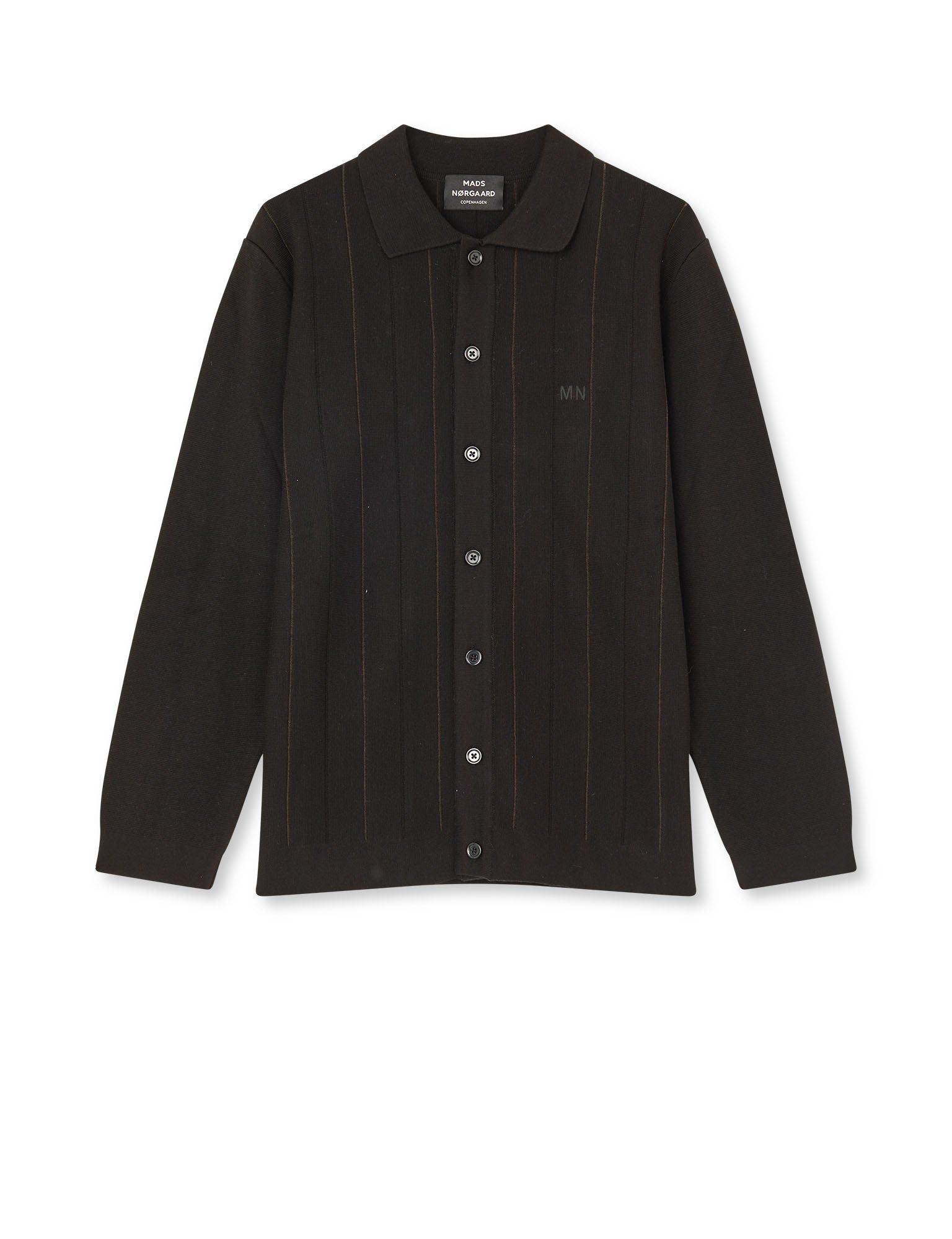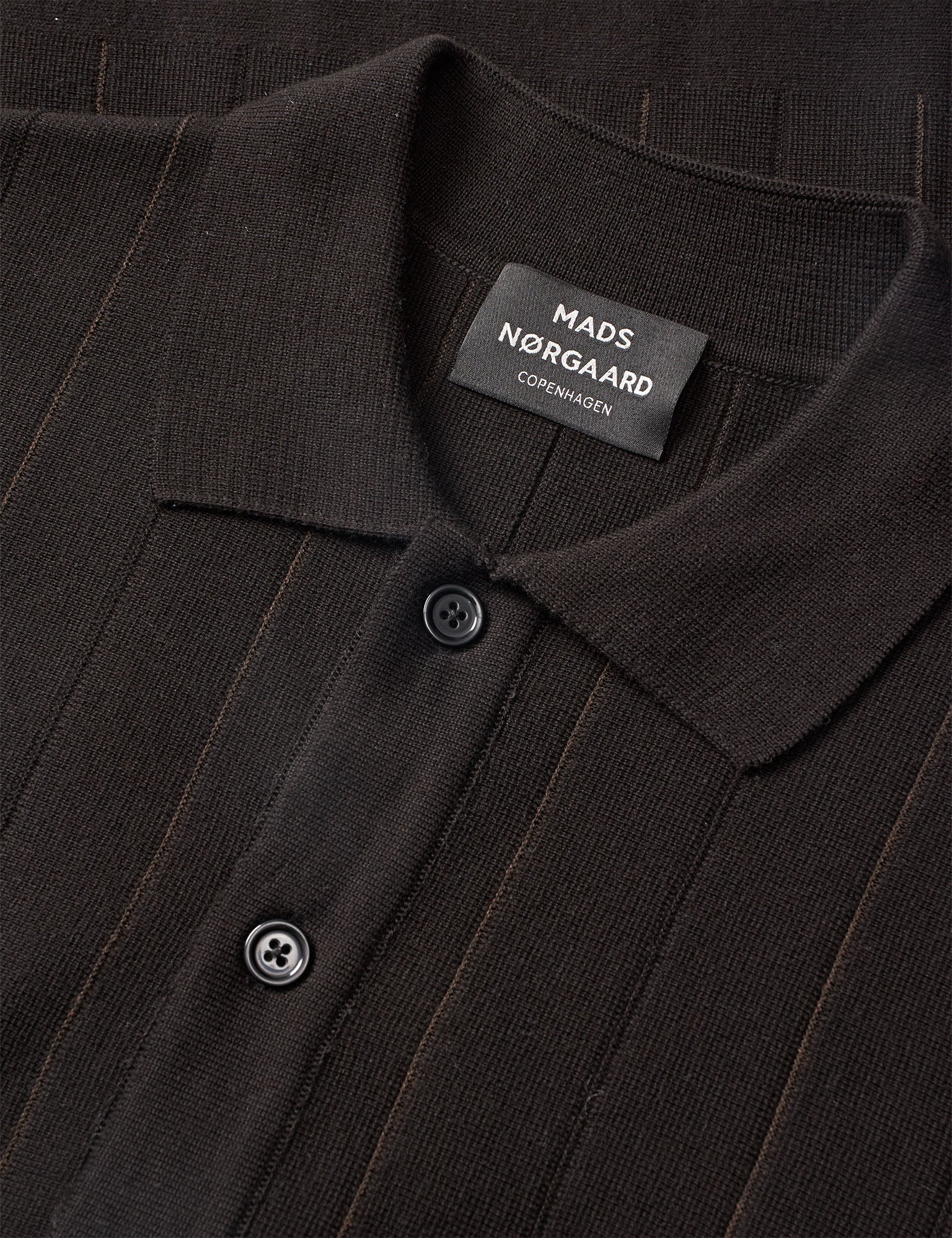 Langærmet strikpolo med krave og knapper. Lige pasform og lodrette strukturstriber.
