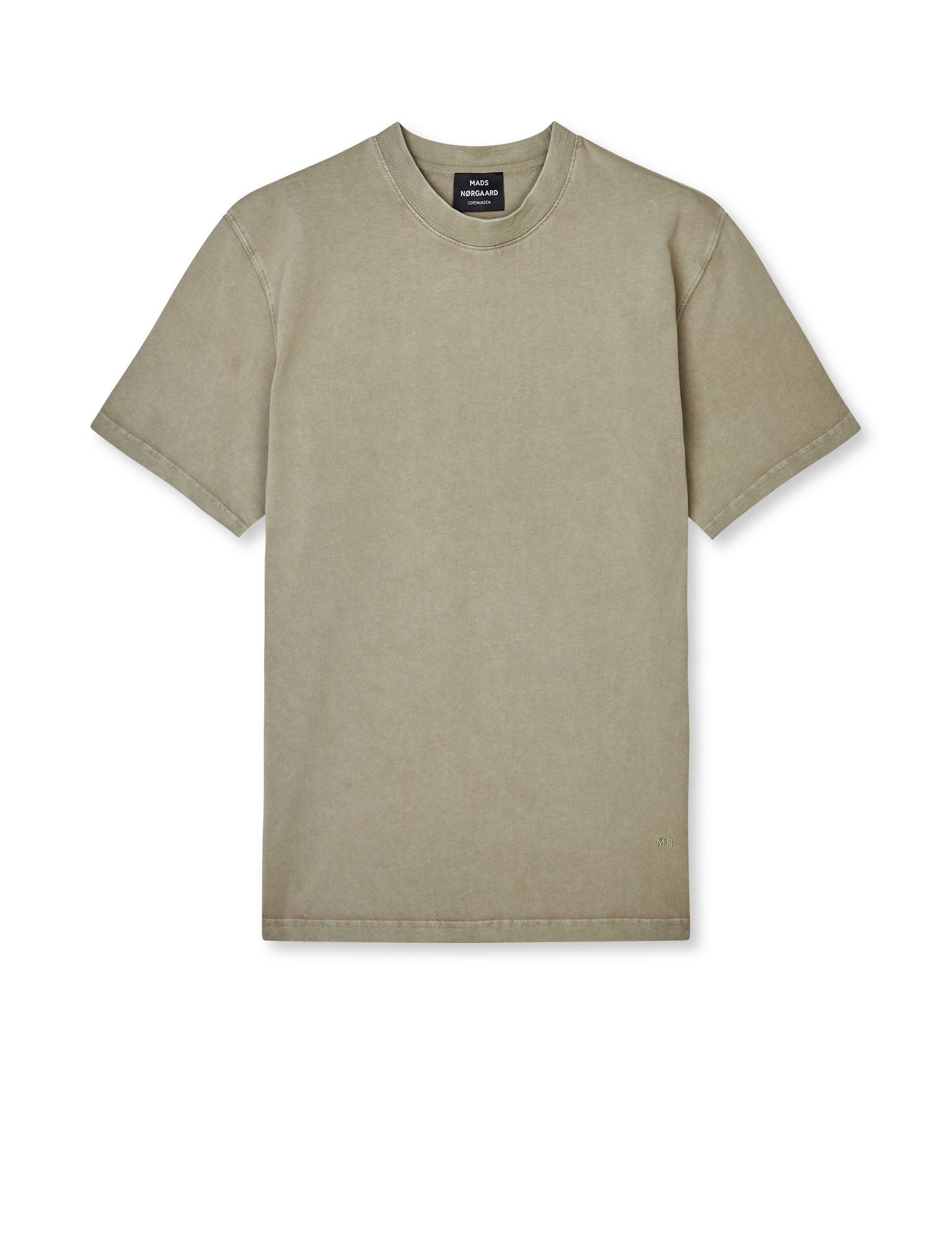 Kraftig, boxy T-shirt med korte ærmer, rund hals og lille initial-logo broderet ved hoften.