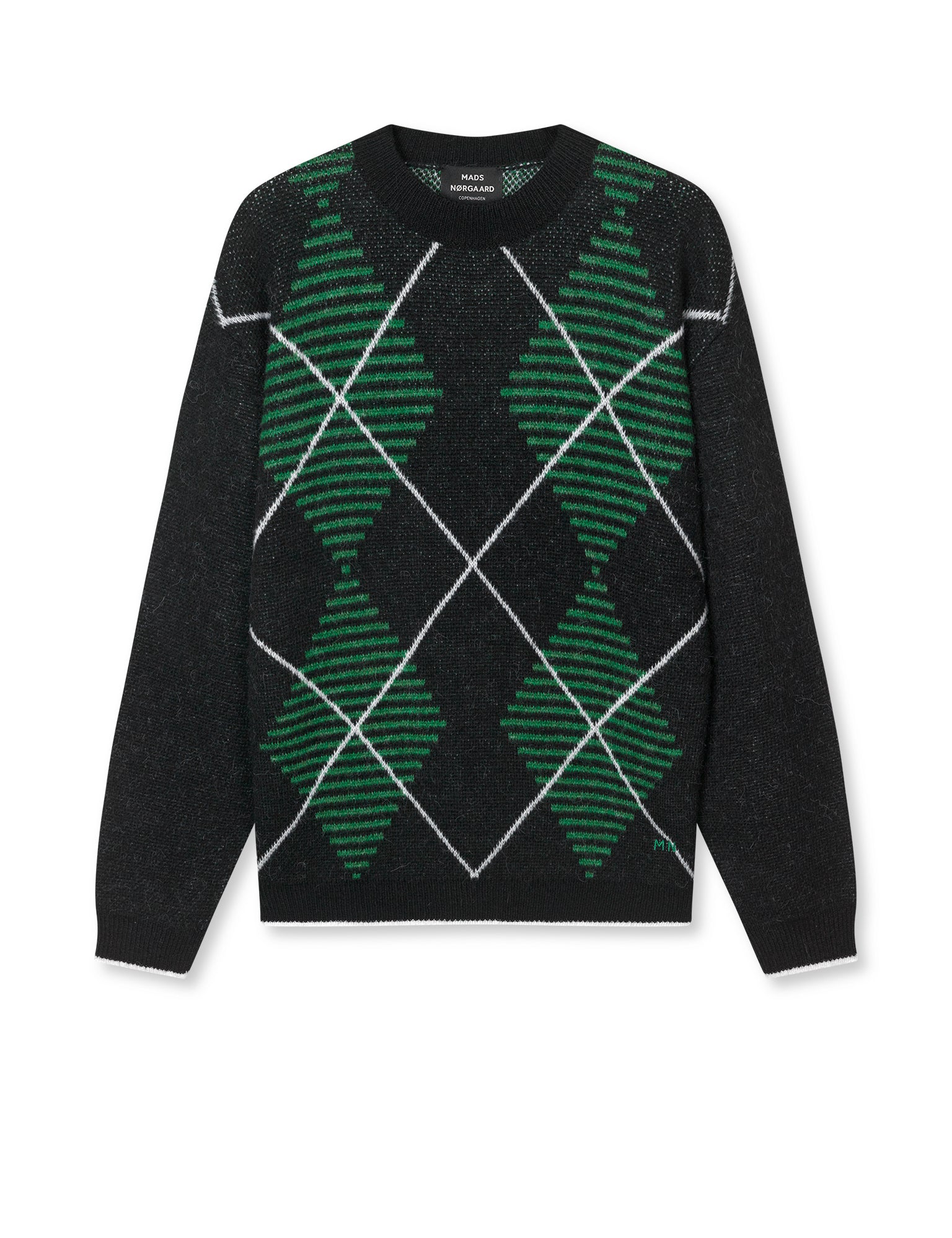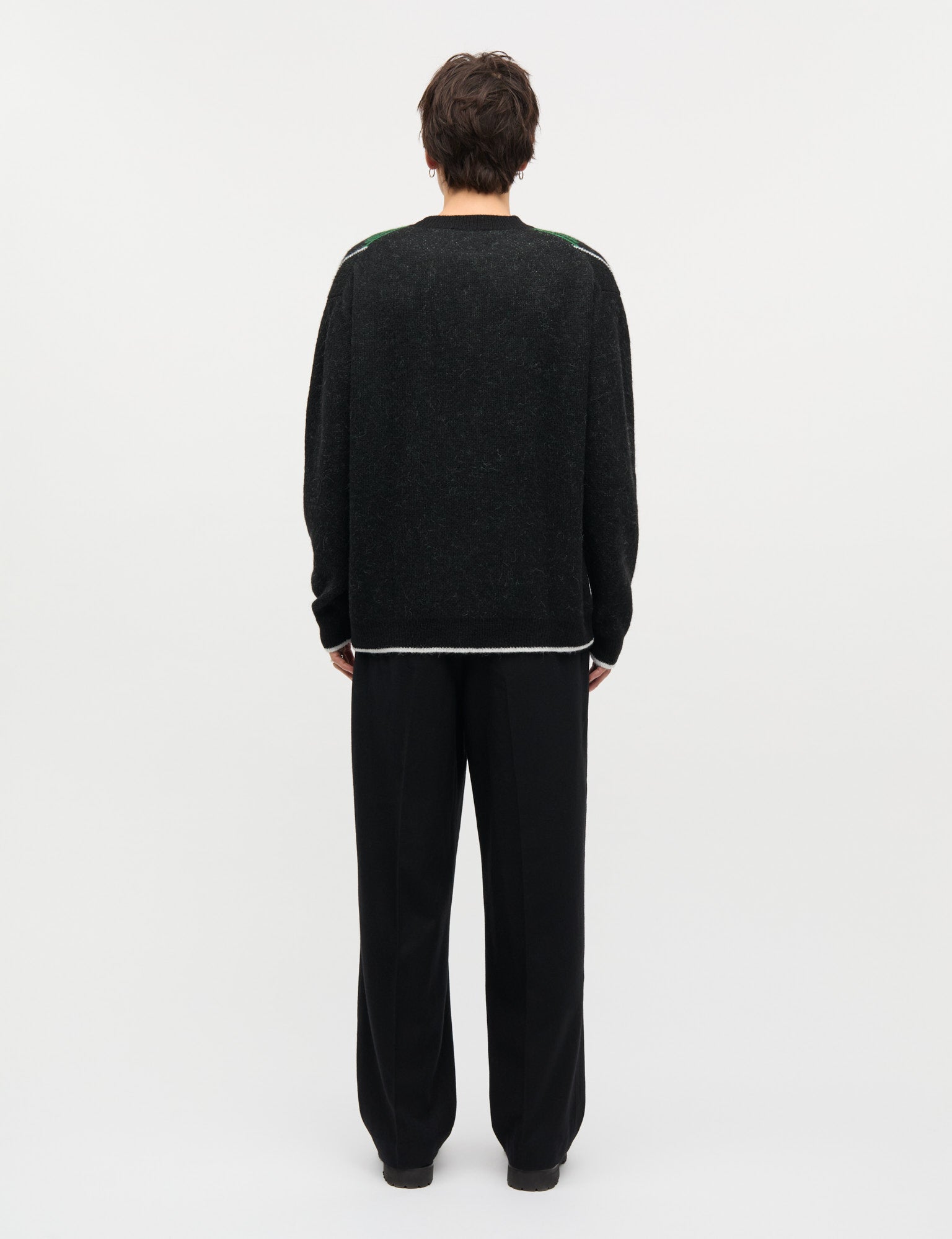 Blød og afslappet striktrøje med harlekintern, striber, rund hals og ribstrikkede kanter.
