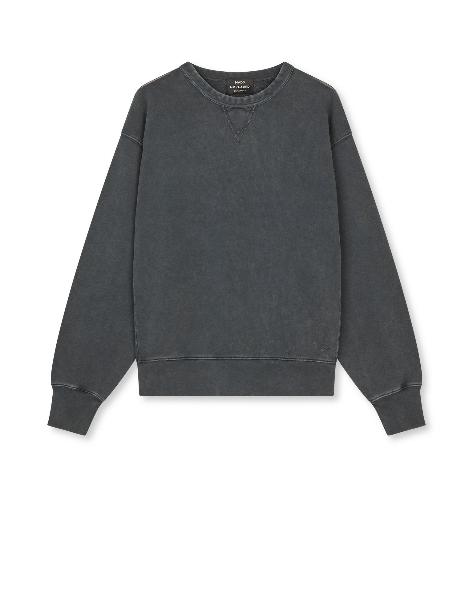 Boxy sweatshirt med rund hals og ribkanter. Afslappet pasform og med trekantsdetalje ved halsudskæringen.