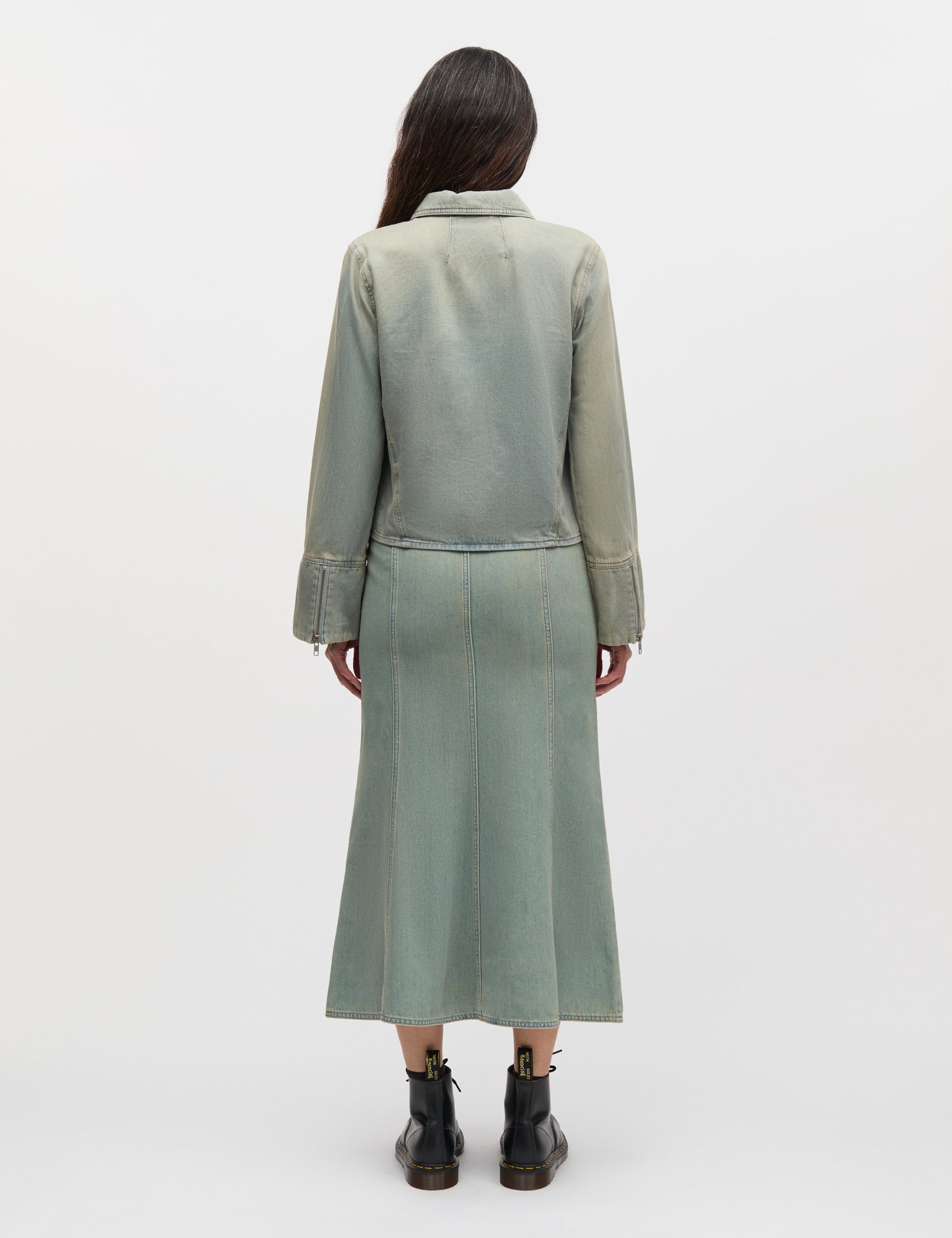 Smal og cropped jakke i blød og let denim med skrå syninger i siderne og brede ærmer.