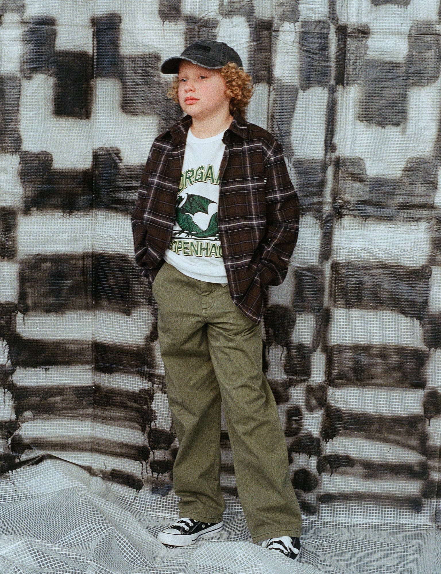 Blød flannelskjorte med bred turn-down krave, små knapper, manchetter og tweedtern.