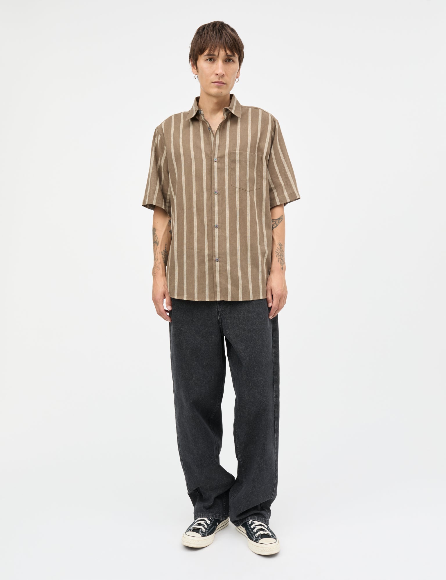 Cotton Linen Victor Stripe er en glat og smidig kortærmet skjorte af hør og bomuld. Pasformen er regular, forholdsvis lige op og ned og med små knapper og en cut-away krave.