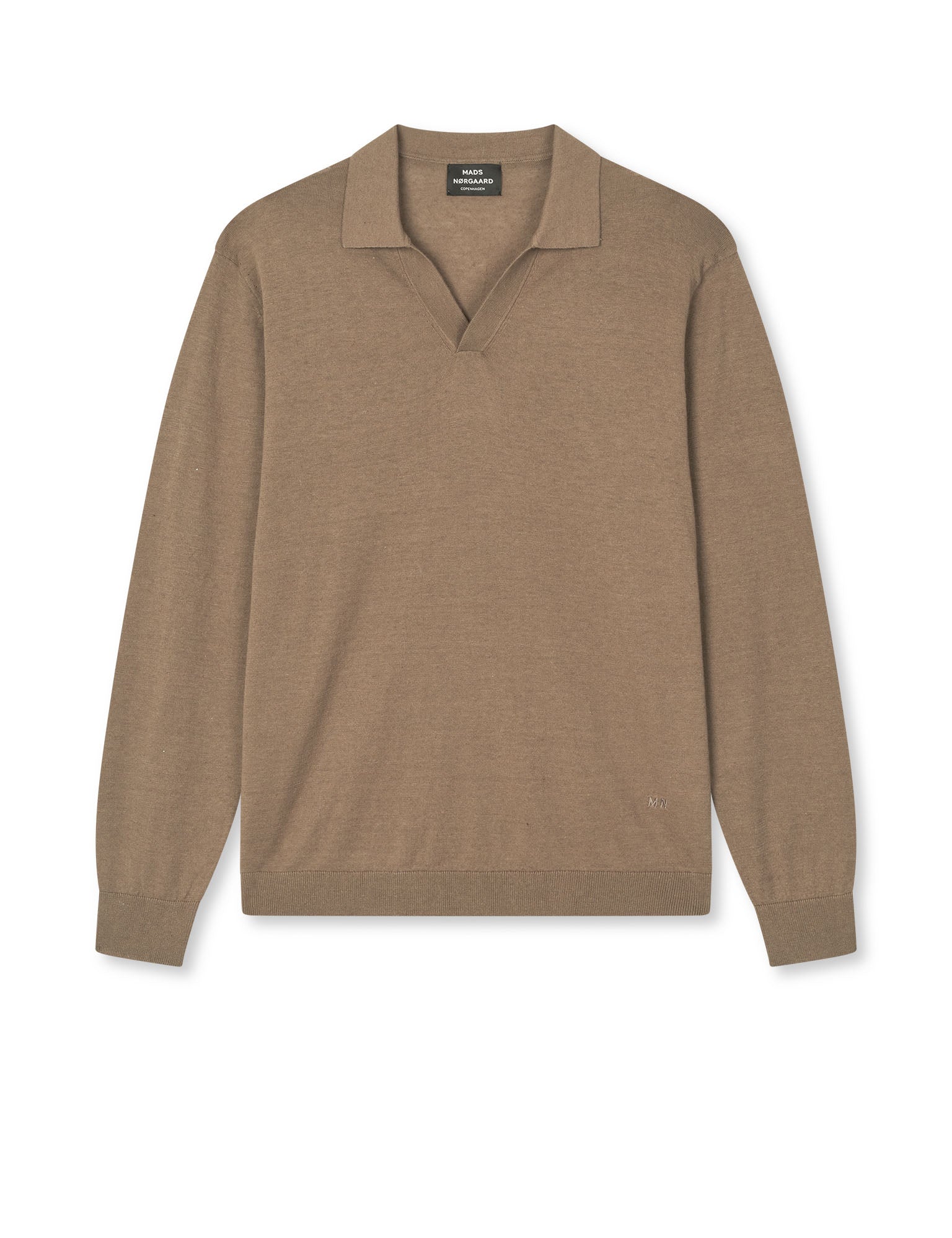 Fintstrikket pullover med åben polo krave. Lige pasform og rib ved ærmekanter og i bunden.