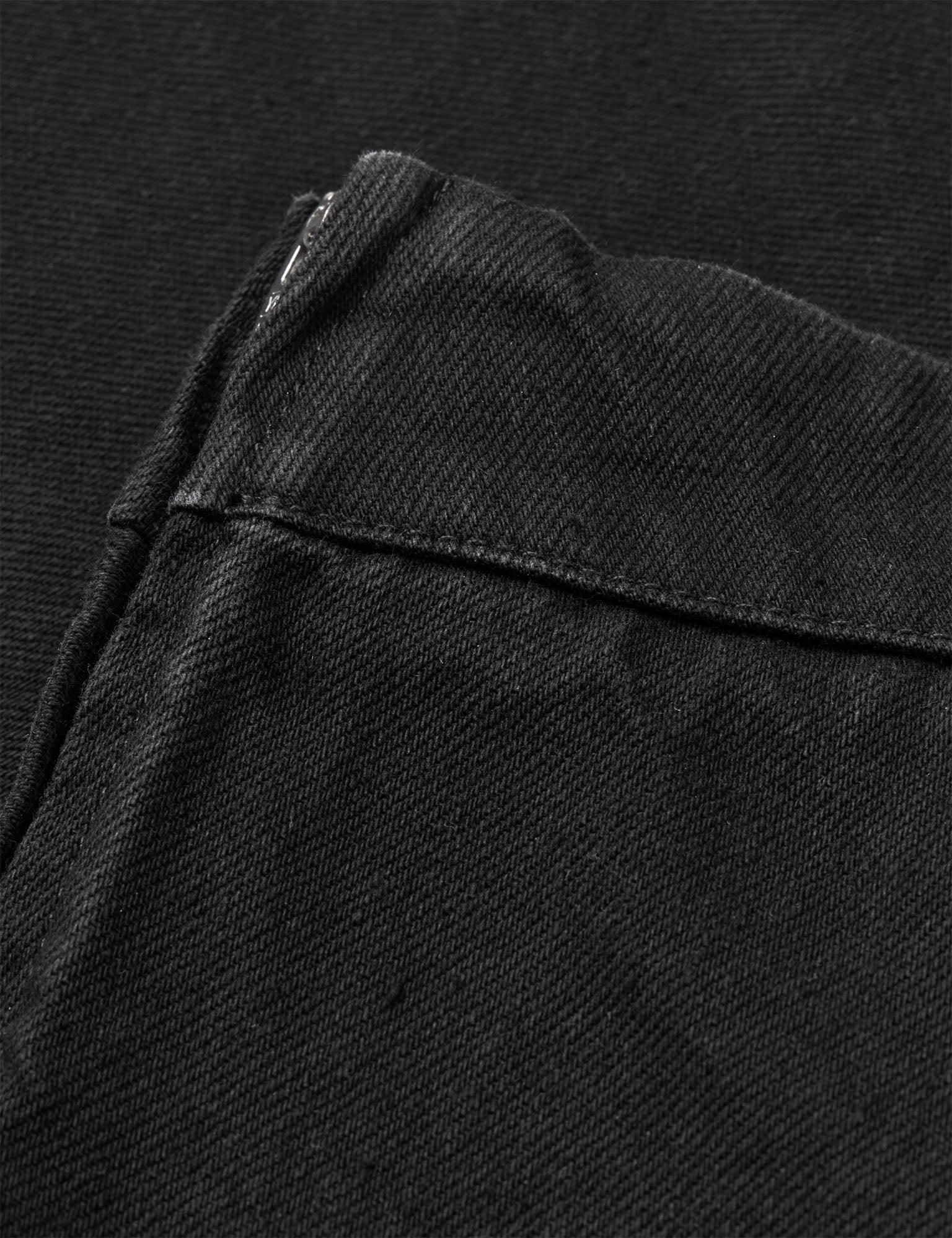 A-formet og knælang denimnederdel med høj talje, lommer og fast linning med lynlås bagpå.