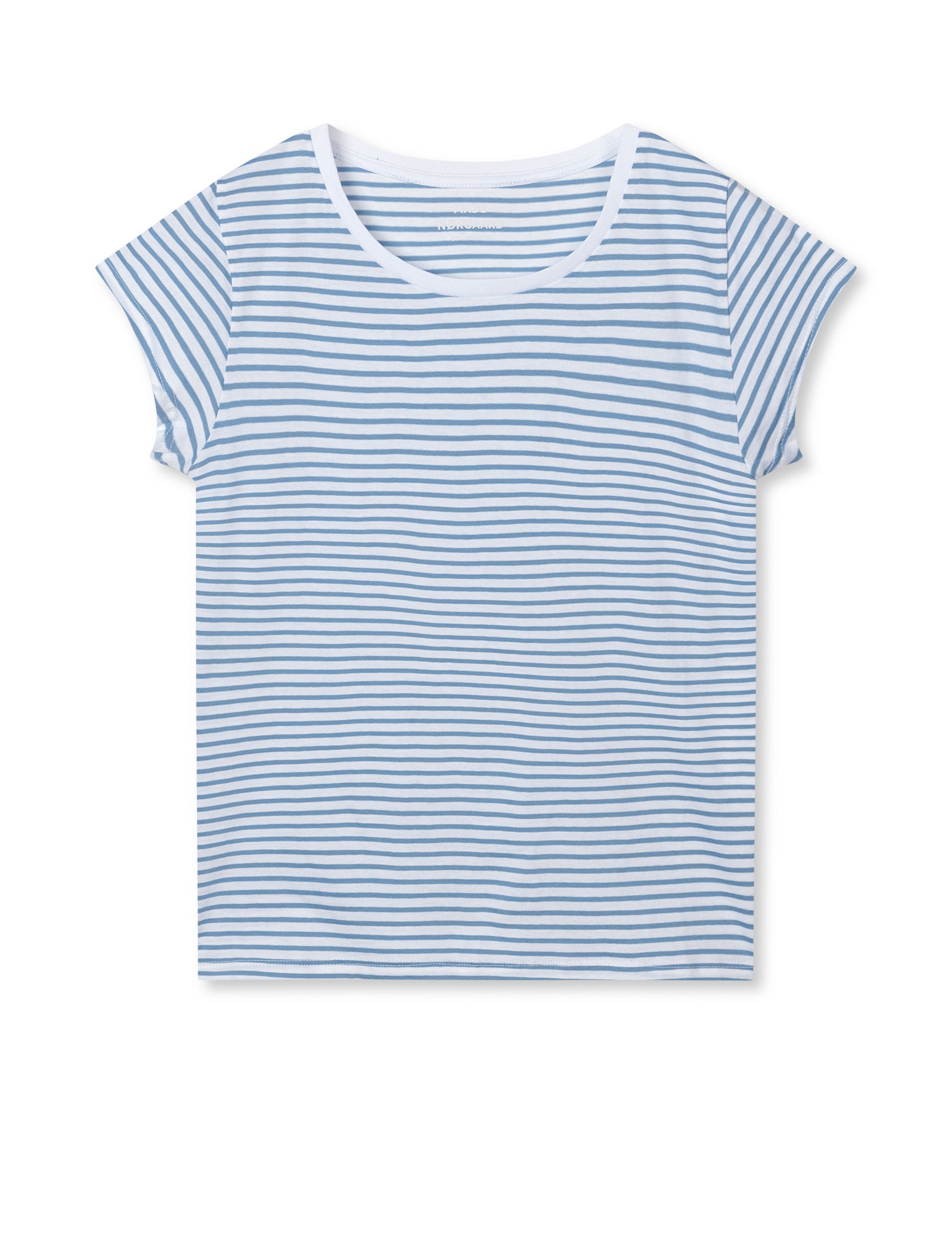 Vores stribede T-shirt Fine Jersey Stripe Teasy Tee FAV er lavet af blød og let bomuld. Pasformen er tætsiddende og med korte ærmer.