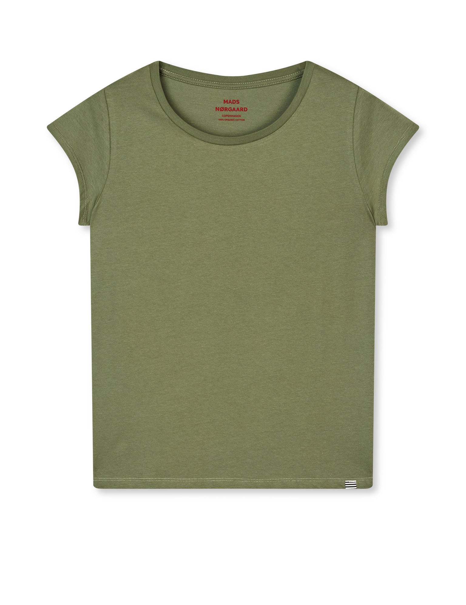 Vores T-shirt Fine Jersey Teasy Tee FAV er lavet af blød og let bomuld. Pasformen er tætsiddende, og ærmet er helt kort, nærmest som en vifte.