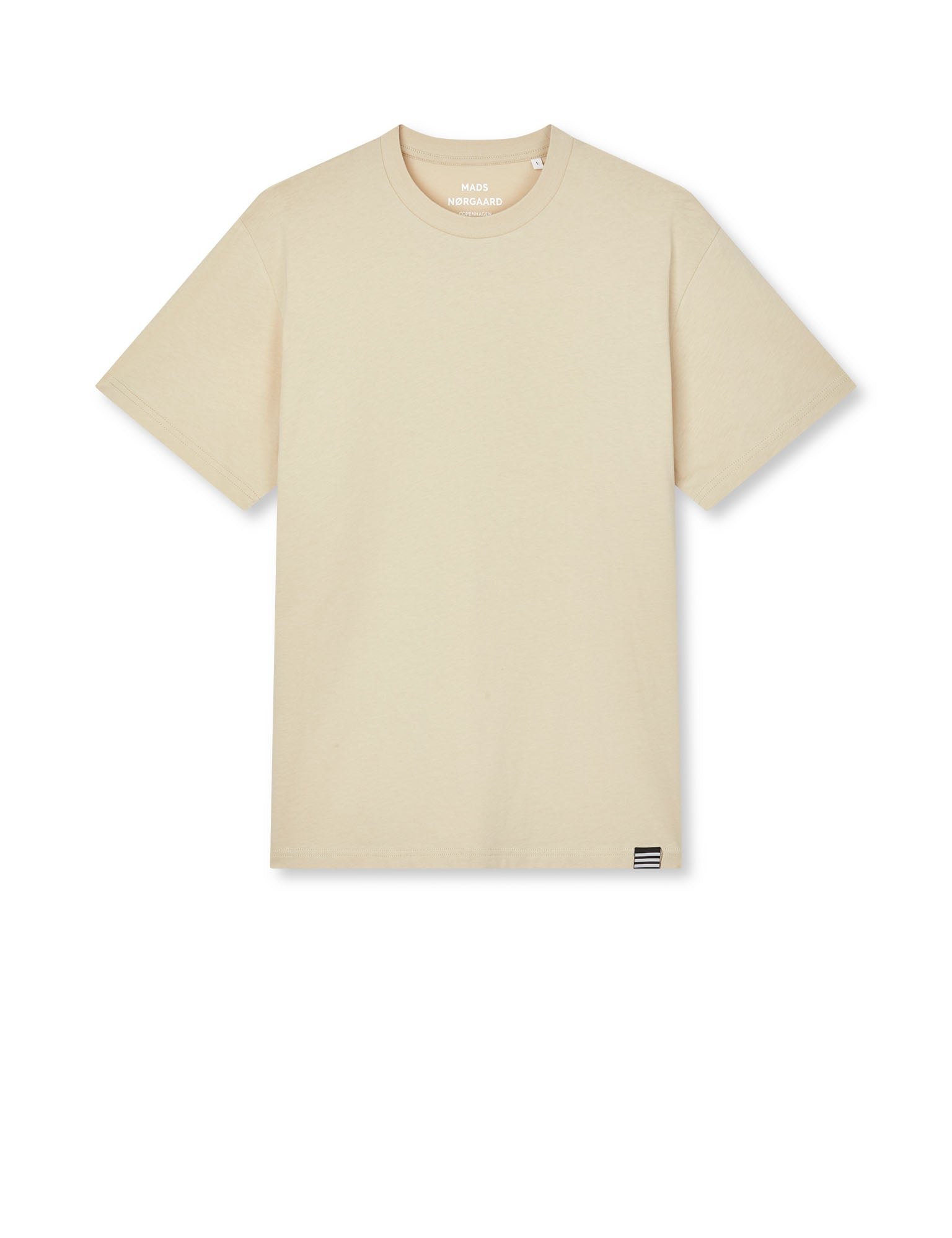 Vores klassiker-T-shirt Fine Jersey Thor Tee er lavet af blød og let bomuld. Pasformen er regular, lige op og ned, sidder lidt til, halsen er rund, og ærmet er kort.