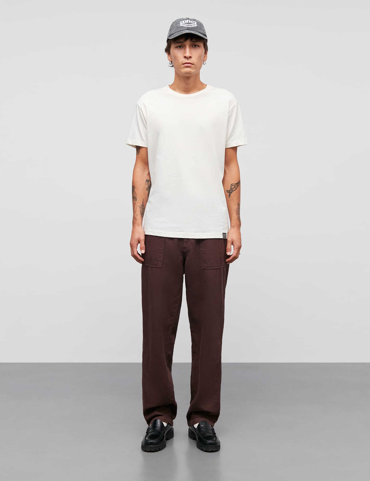 Vores klassiker-T-shirt Fine Jersey Thor Tee er lavet af blød og let bomuld. Pasformen er regular, lige op og ned, sidder lidt til, halsen er rund, og ærmet er kort.