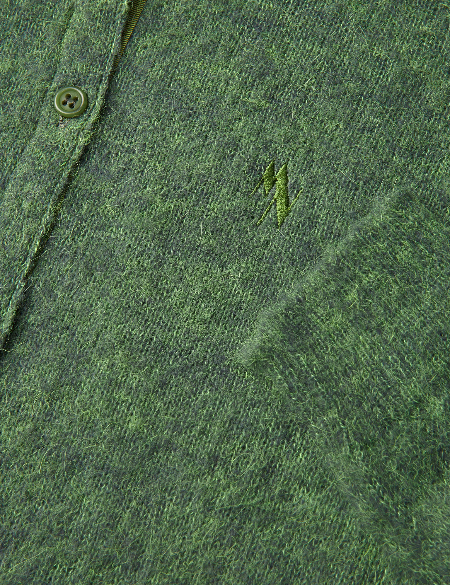 Blød og småfluffy strikcardigan med rund hals, små knapper, ribstrikkede kanter og broderet minilogo.