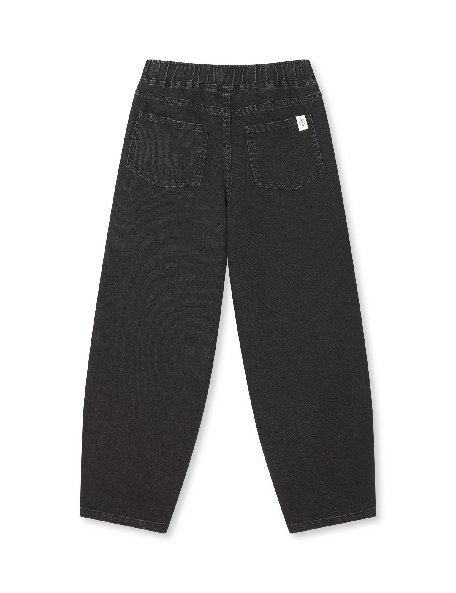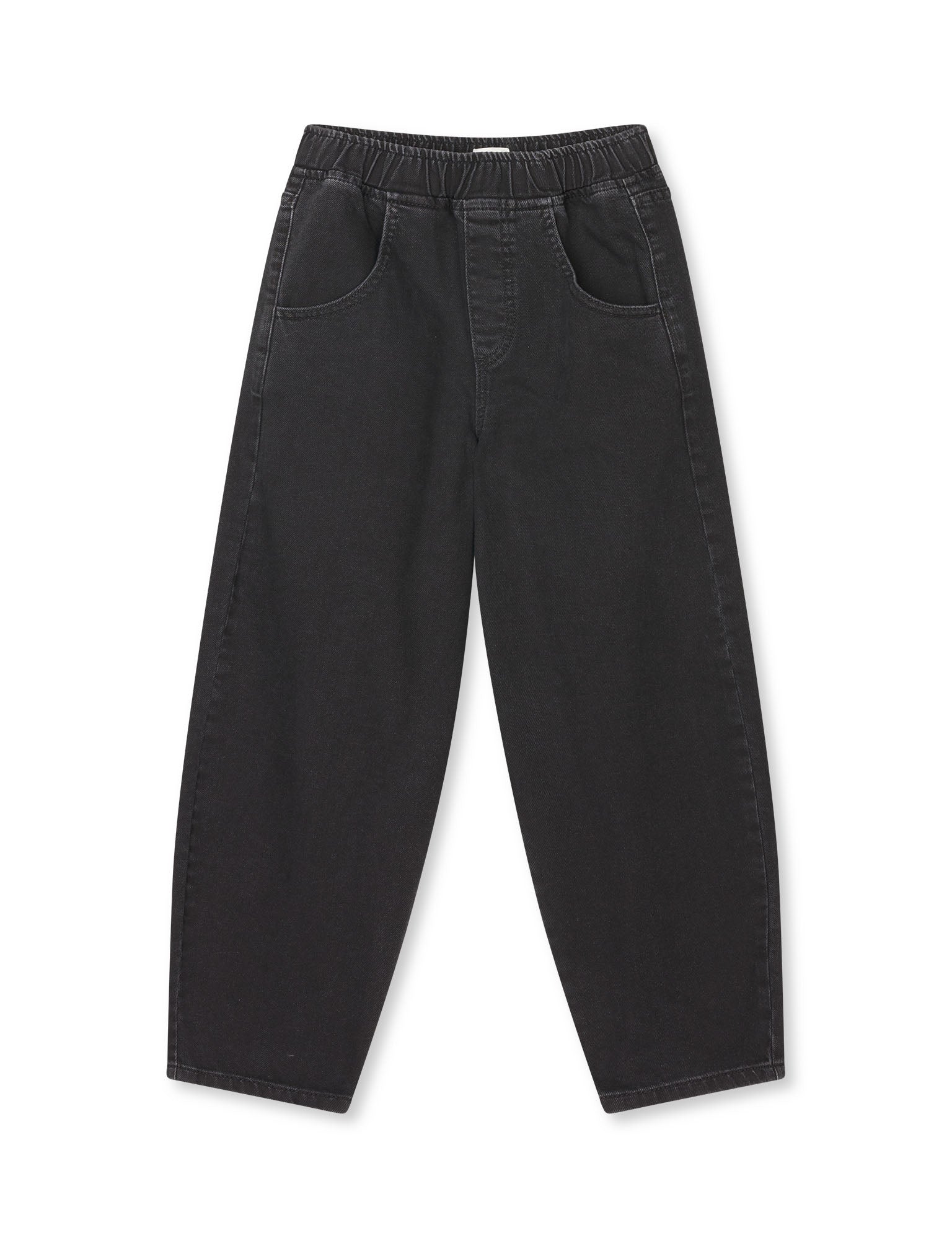 Jeans med voluminøse barrel-ben, elastisk linning og forlommer og baglommer.