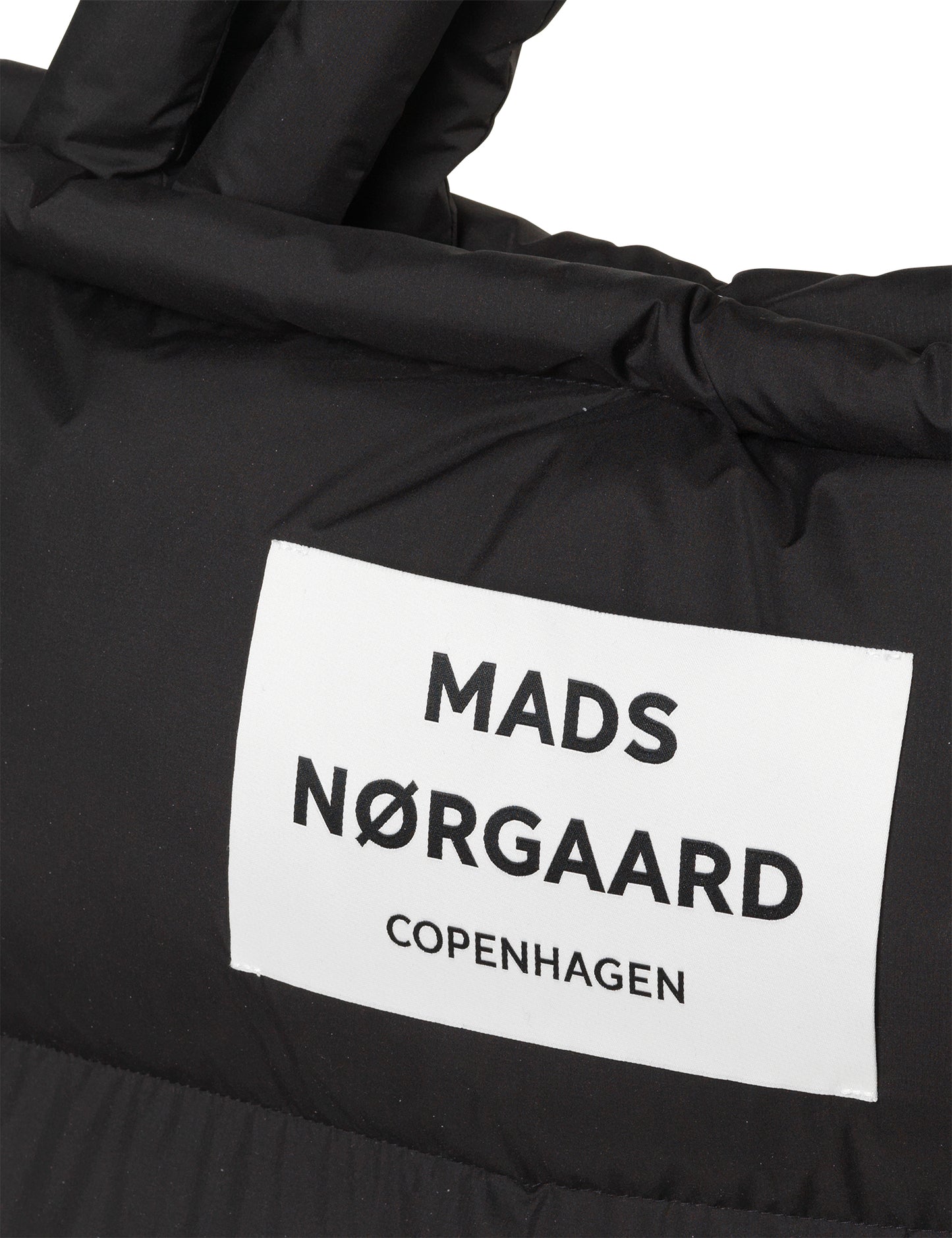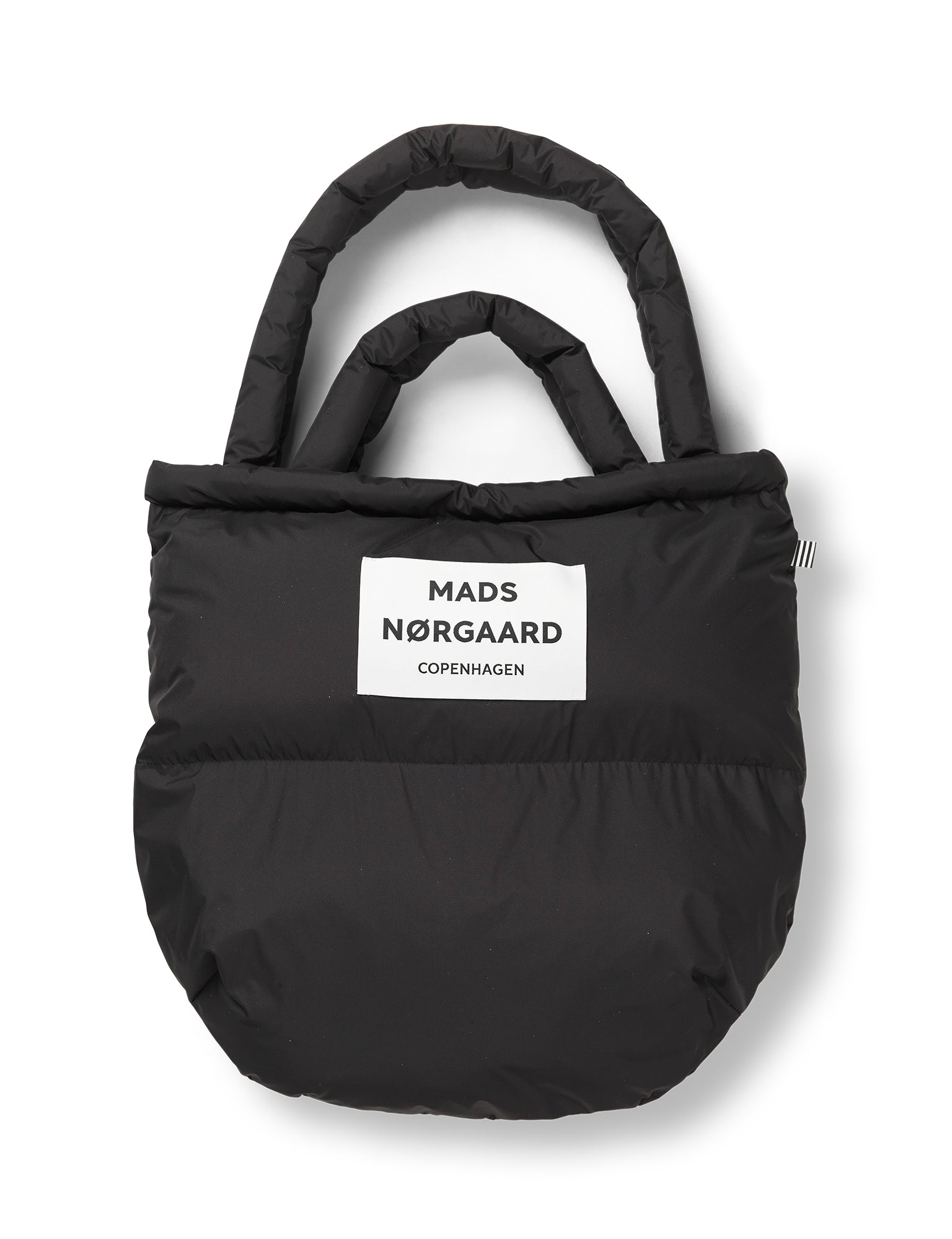 Shopper i polyester, der er blød, puffy og glat som en dynejakke og har hanke i to længder og en inderlomme.