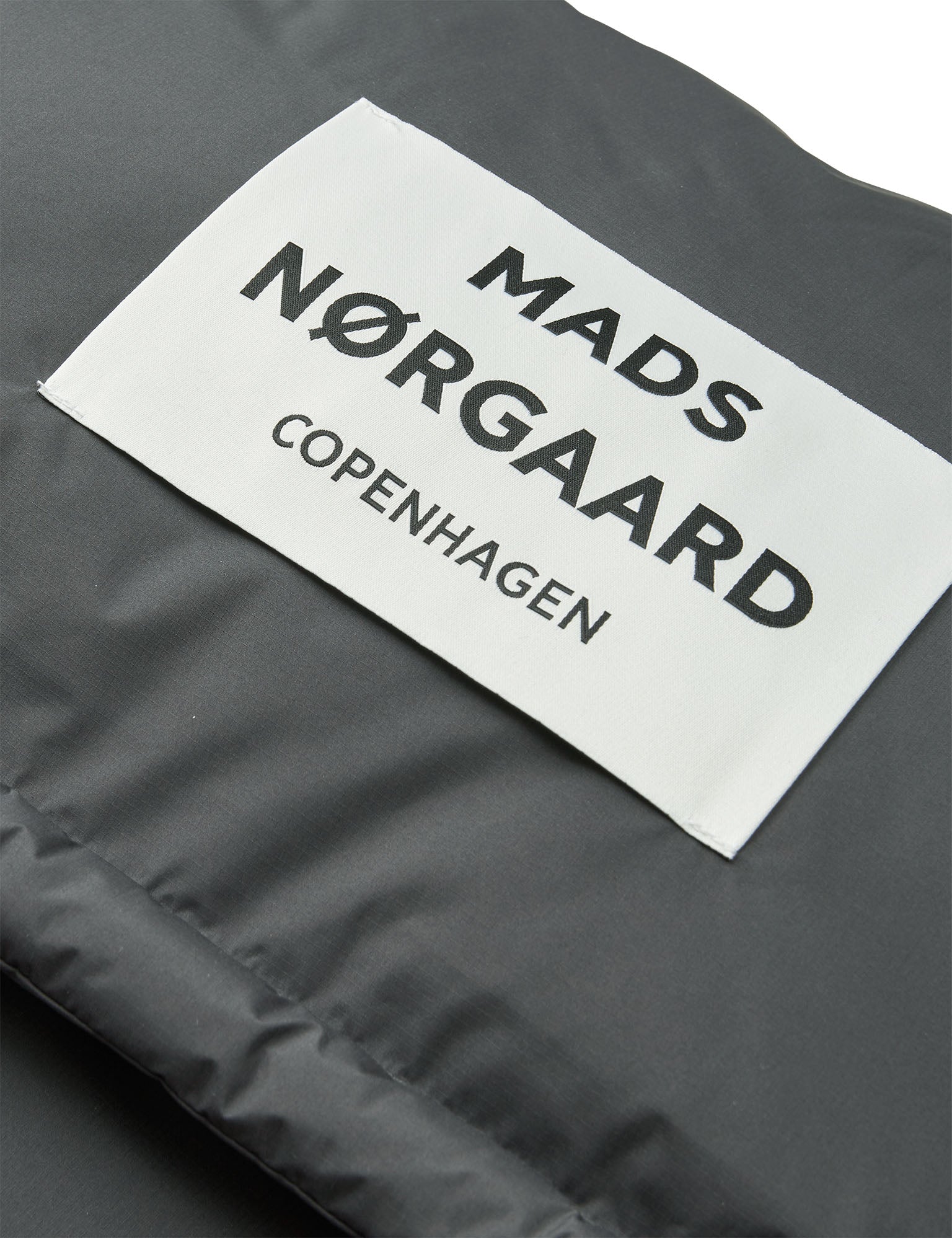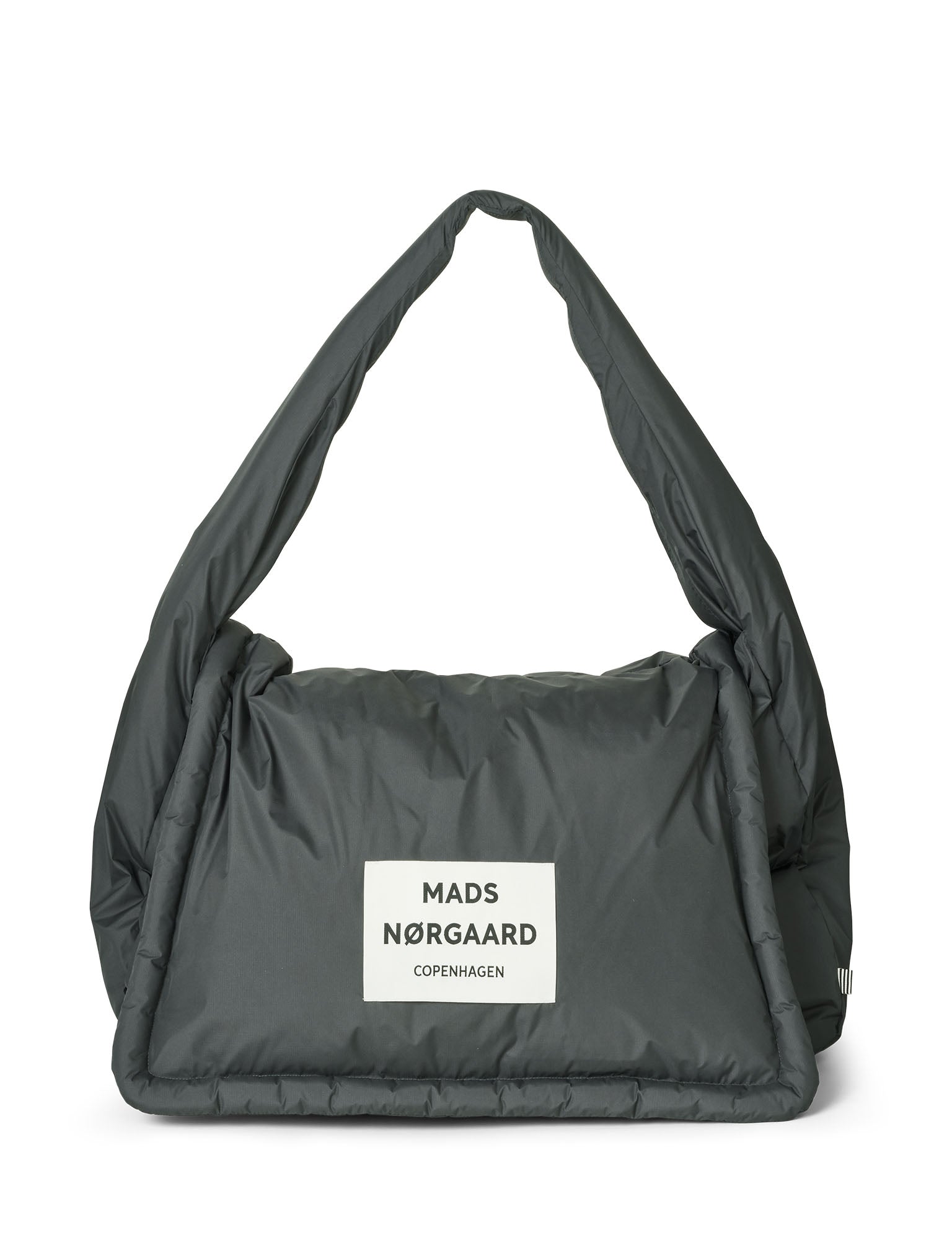 Taske med puffy look. Skulderrem og label med logo på fronten. Ét stort indvendigt rum med et lille side rum. Samlet højde: 40 cm. Sidebredde, bund: 20 cm.