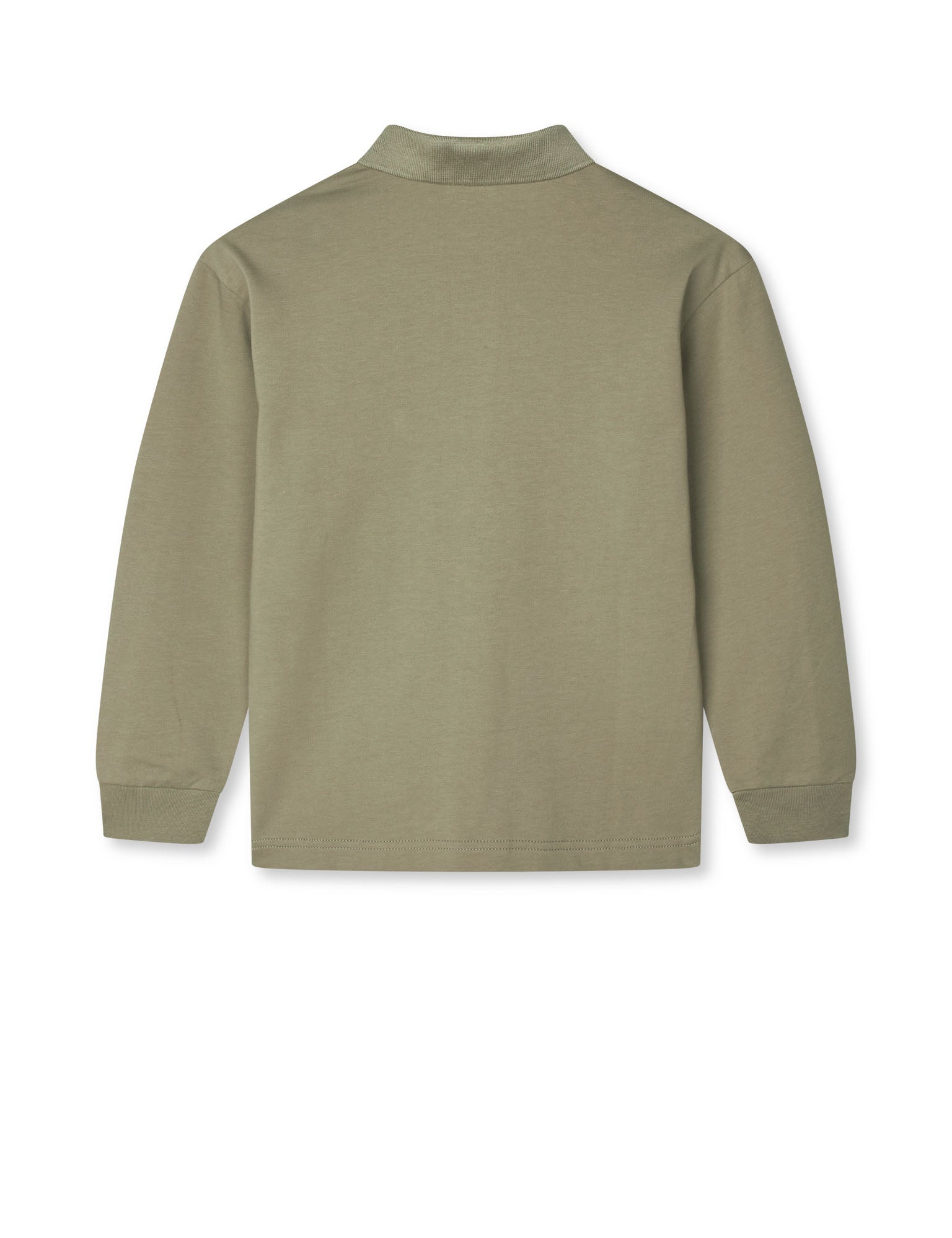 Langærmet polo med klassisk skjortekrave, to små knapper og broderede initialer på brystet.