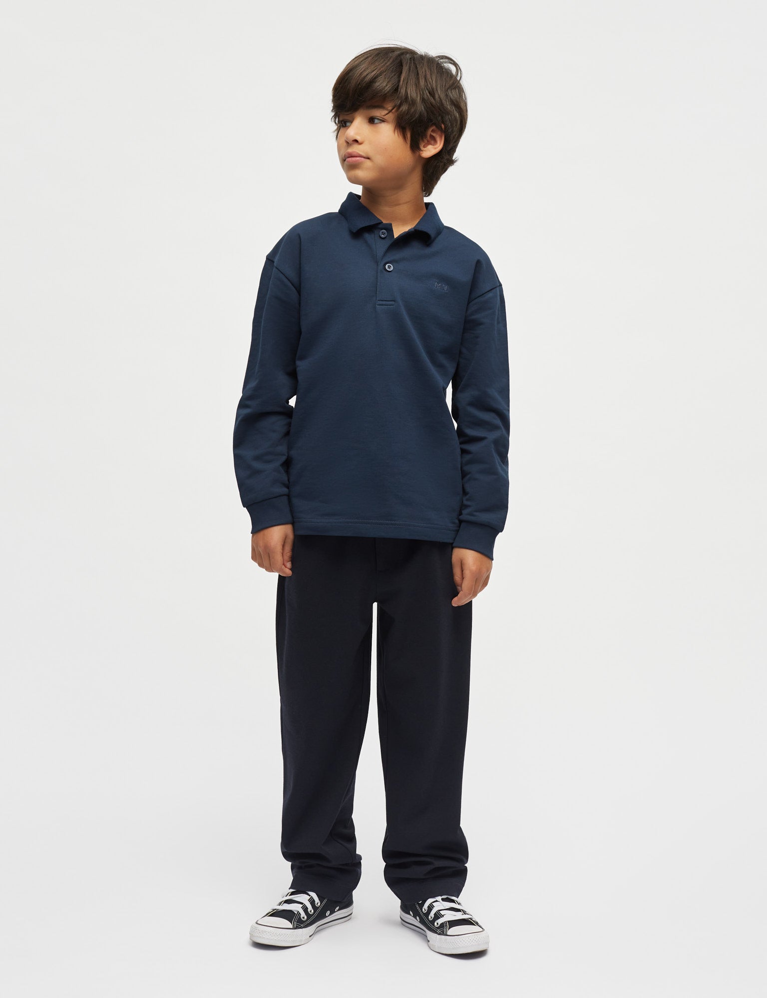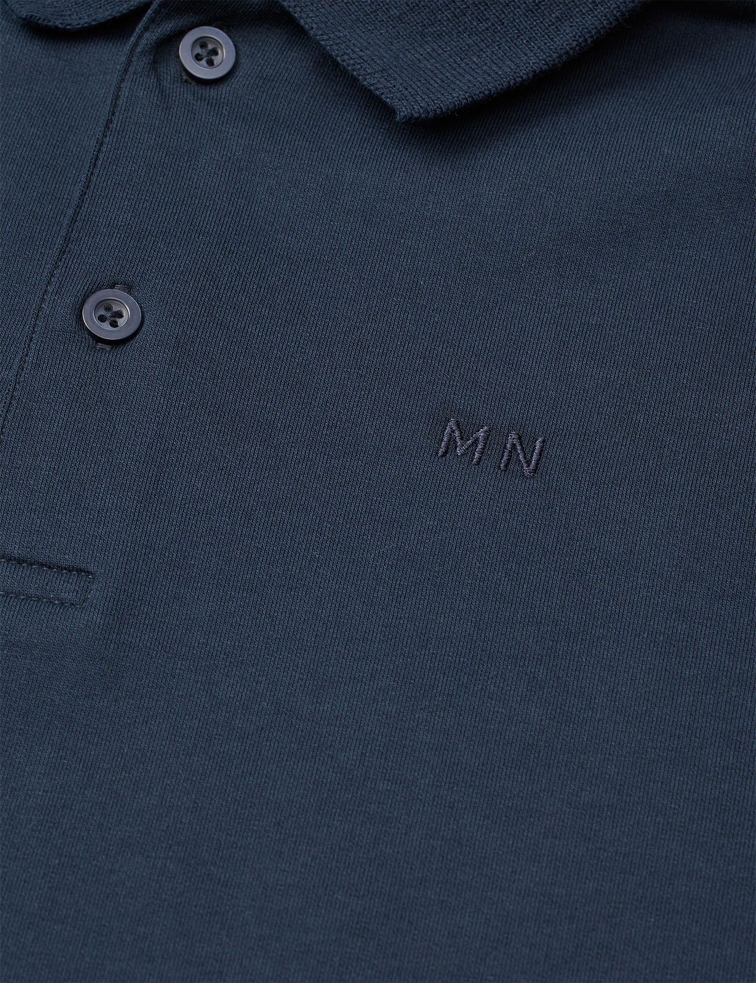 Langærmet polo med klassisk skjortekrave, to små knapper og broderede initialer på brystet.
