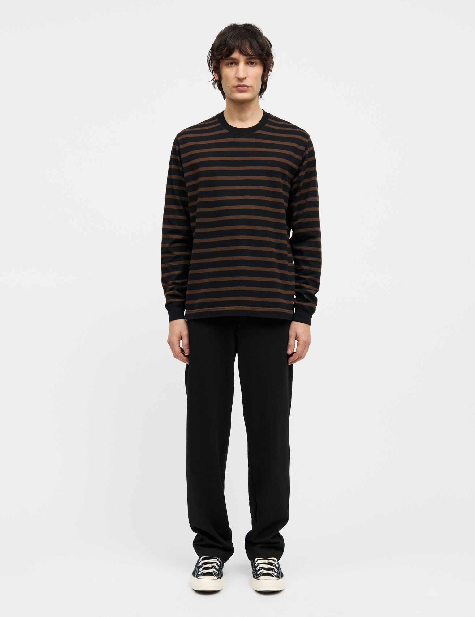 Bukserne Metropolis Morten er elastiske og super behagelige. Pasformen er lige op og ned, og stoffet føles som glat jersey af lun uld.