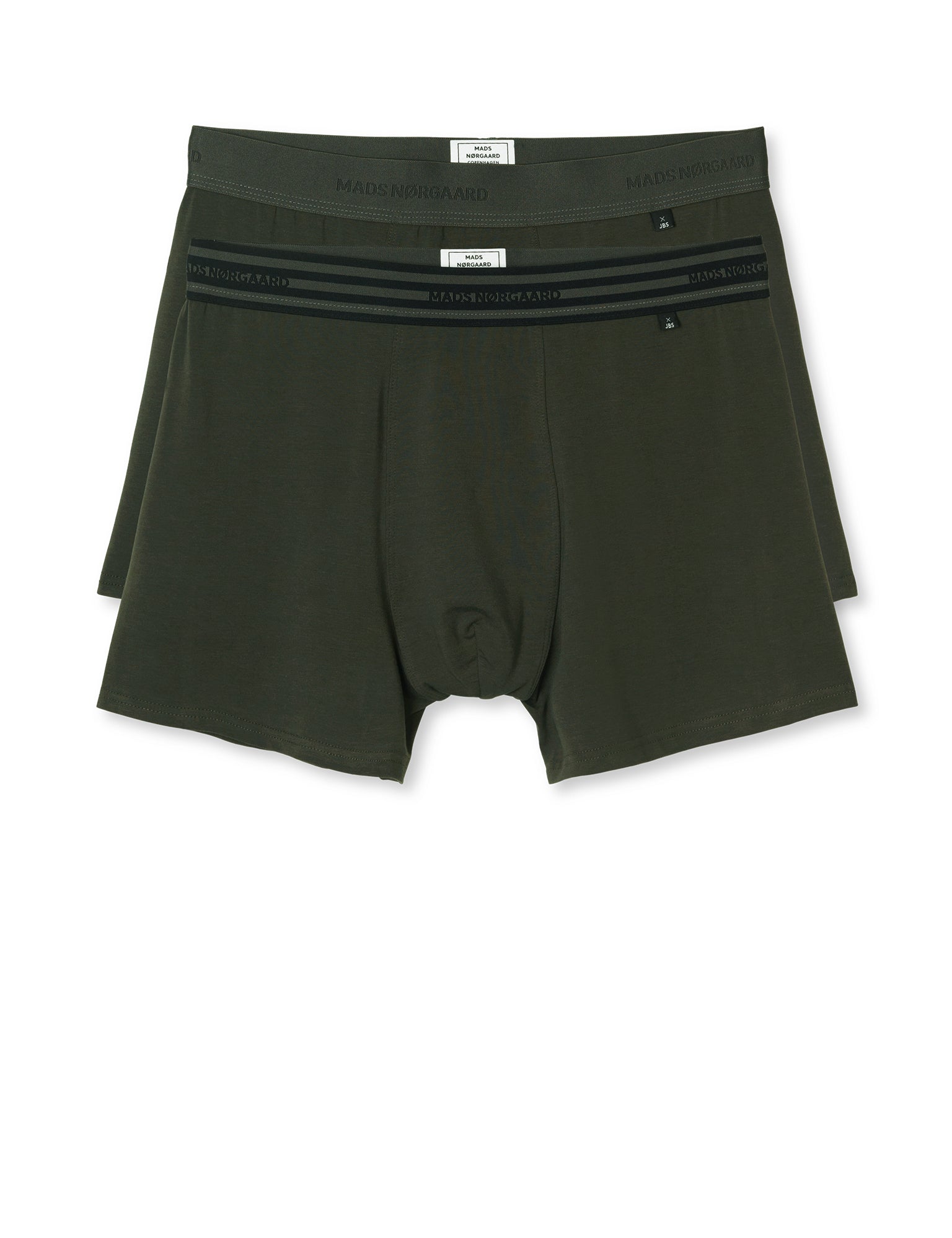 Designet på disse tights, er et flot klassisk design, tro mod JBS og Mads Nørgaards kendte striber. Fremstillet af bambusviskose, tilbyder disse tights blødhed og enestående komfort. Bambusdyrkning kræver ingen pesticider eller kunstig vanding, hvilket gør disse tights til et miljøvenligt valg. OCS-certificeret og lavet i en lukket proces, der sparer op til 180 liter vand per par sammenlignet med konventionel produktion. Med denne 2-pak får du to par army grønne tights, med en fin detalje, med en stribet elastik, tro mod Mads Nørgaards striber.