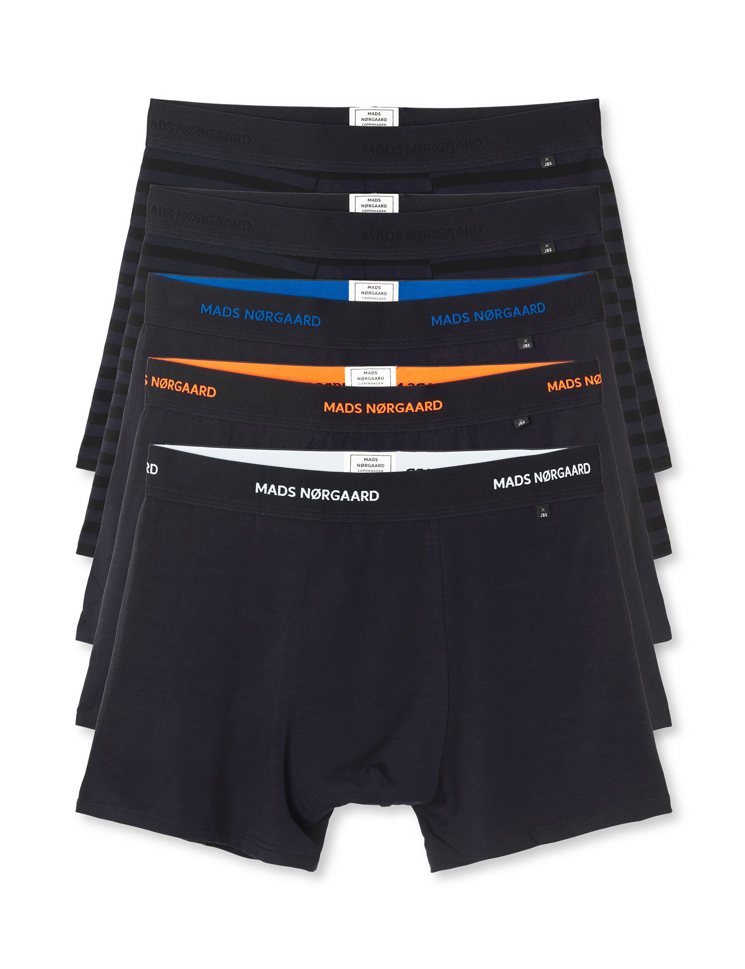 Designet på disse tights, er et flot klassisk design, tro mod JBS og Mads Nørgaards kendte striber. Fremstillet af bambusviskose, tilbyder disse tights blødhed og enestående komfort. Bambusdyrkning kræver ingen pesticider eller kunstig vanding, hvilket gør disse tights til et miljøvenligt valg. OCS-certificeret og lavet i en lukket proces, der sparer op til 180 liter vand per par sammenlignet med konventionel produktion. Med denne 5-pak, får du fem par tights i både stribede og ensfarvet, med forskellige farvede elastikker. Den ensfarvet er en mørk navy.