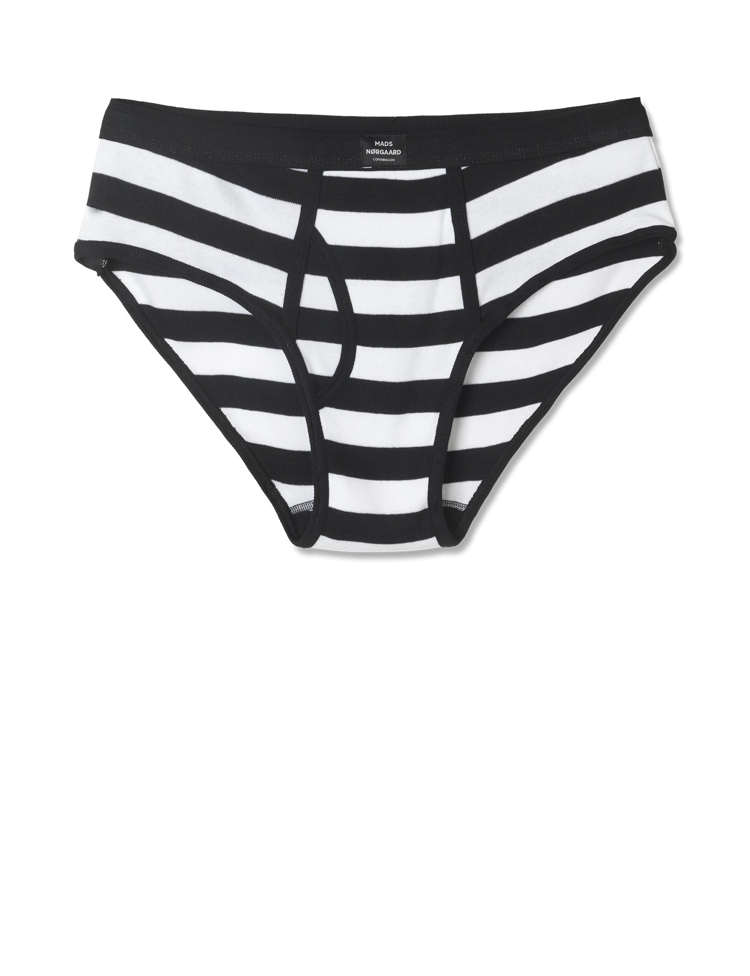 Inspireret af tidløs tradition fortæller Original Cotton rib-serien en historie om håndværk, der går tilbage til 1940'erne. Med sit sømløse design for ekstra komfort, tilbyder denne GOTS-certificerede kollektion både arv og kvalitet til den moderne bruger. Disse briefs er sort- og hvidstribet med Mads Nørgaard logo foran.