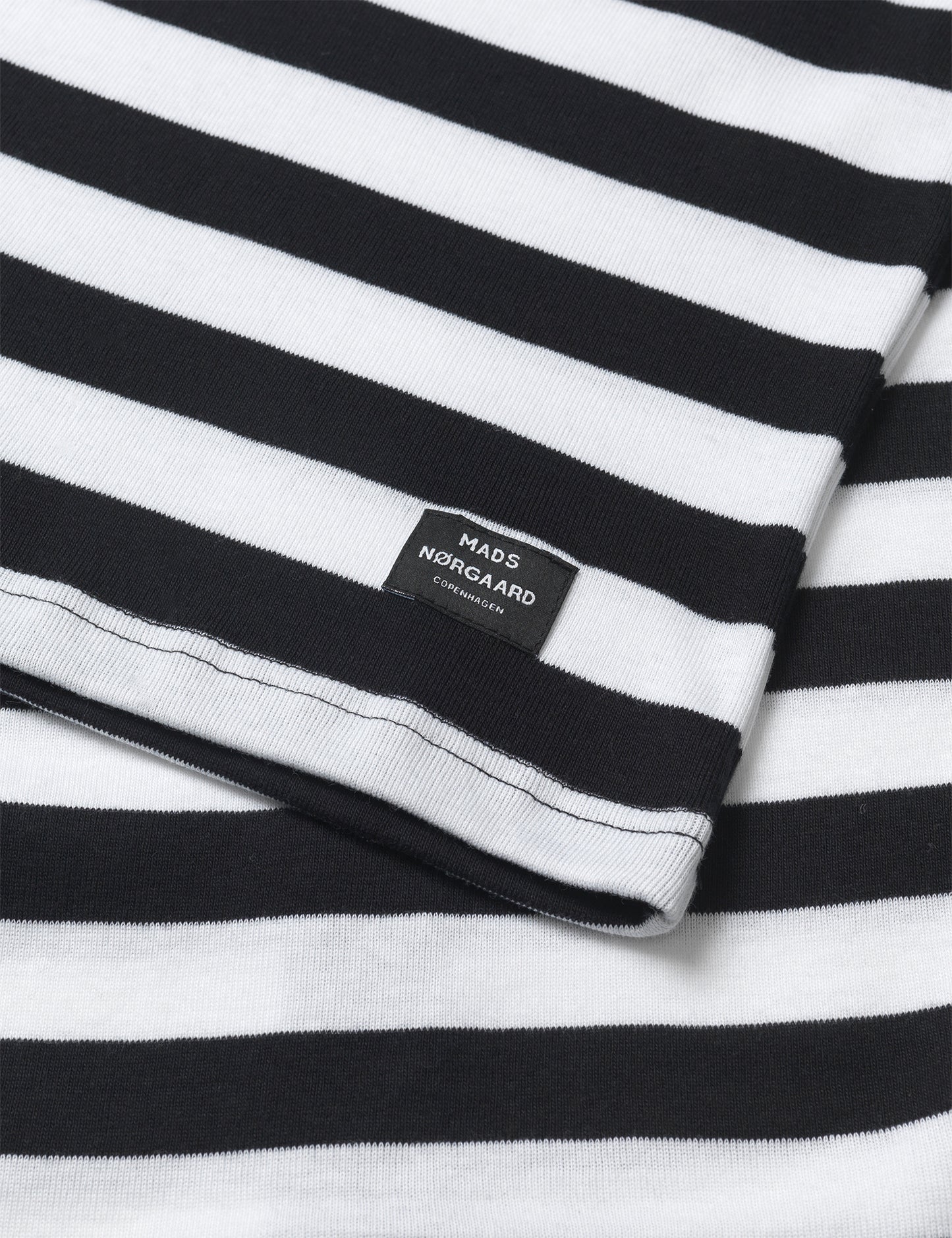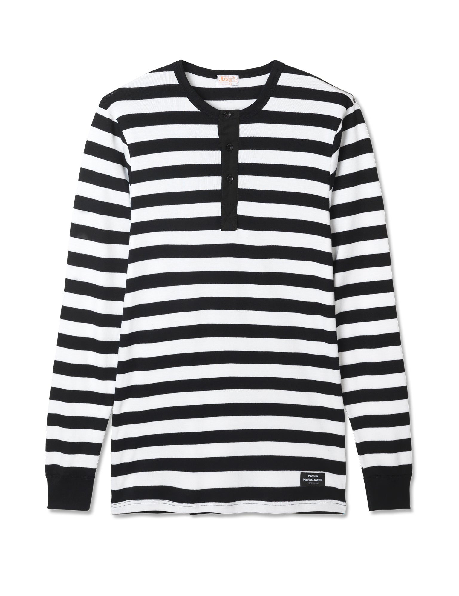 Inspireret af tidløs tradition fortæller Original Cotton rib-serien en historie om håndværk, der går tilbage til 1940'erne. Med sit sømløse design for ekstra komfort, tilbyder denne GOTS-certificerede kollektion både arv og kvalitet til den moderne bruger. Denne grandad er sort- og hvidstribet med Mads Nørgaard logo i siden.