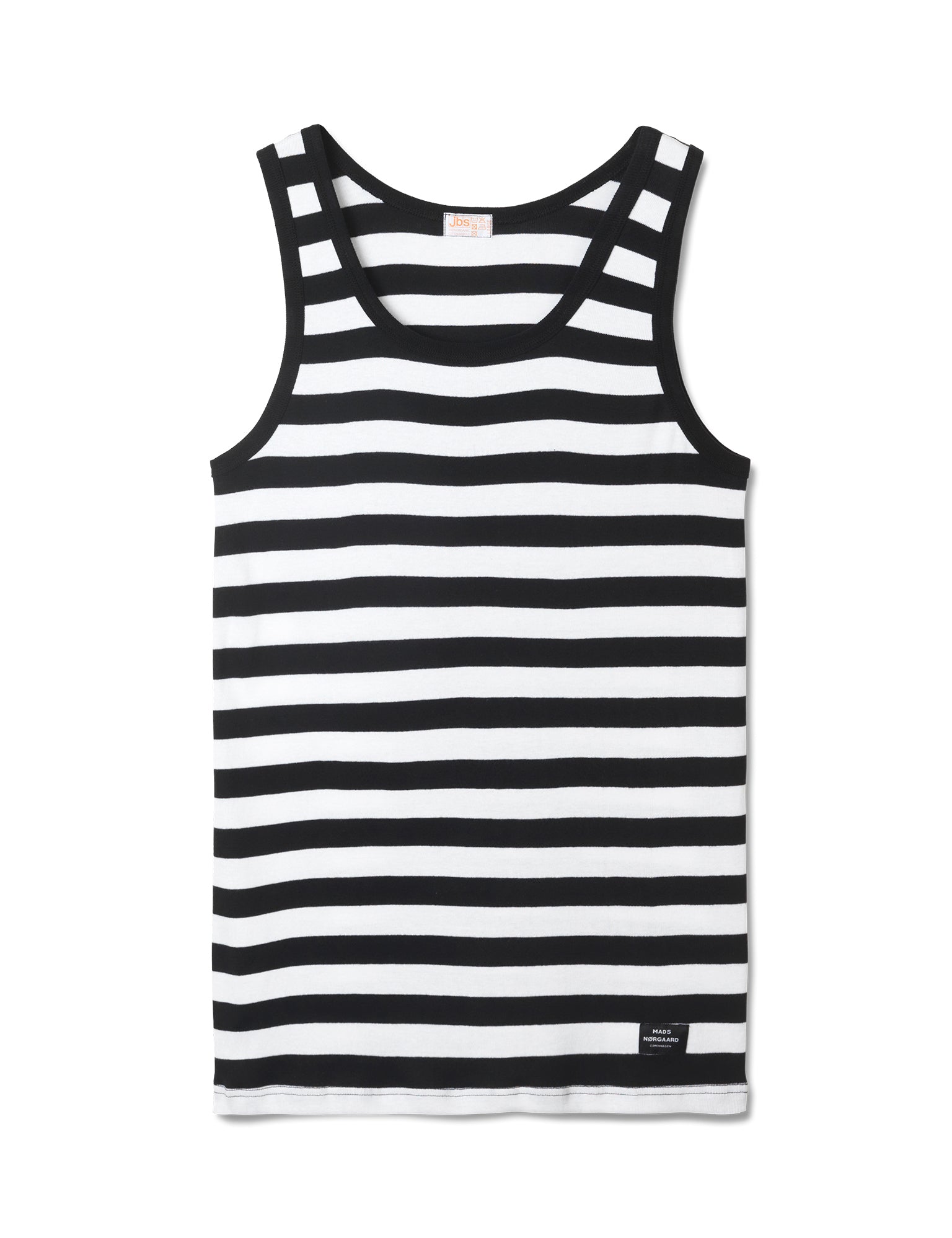 Inspireret af tidløs tradition fortæller Original Cotton rib-serien en historie om håndværk, der går tilbage til 1940'erne. Med sit sømløse design for ekstra komfort, tilbyder denne GOTS-certificerede kollektion både arv og kvalitet til den moderne bruger. Denne tanktop er sort- og hvidstribet med Mads Nørgaard logo i siden.