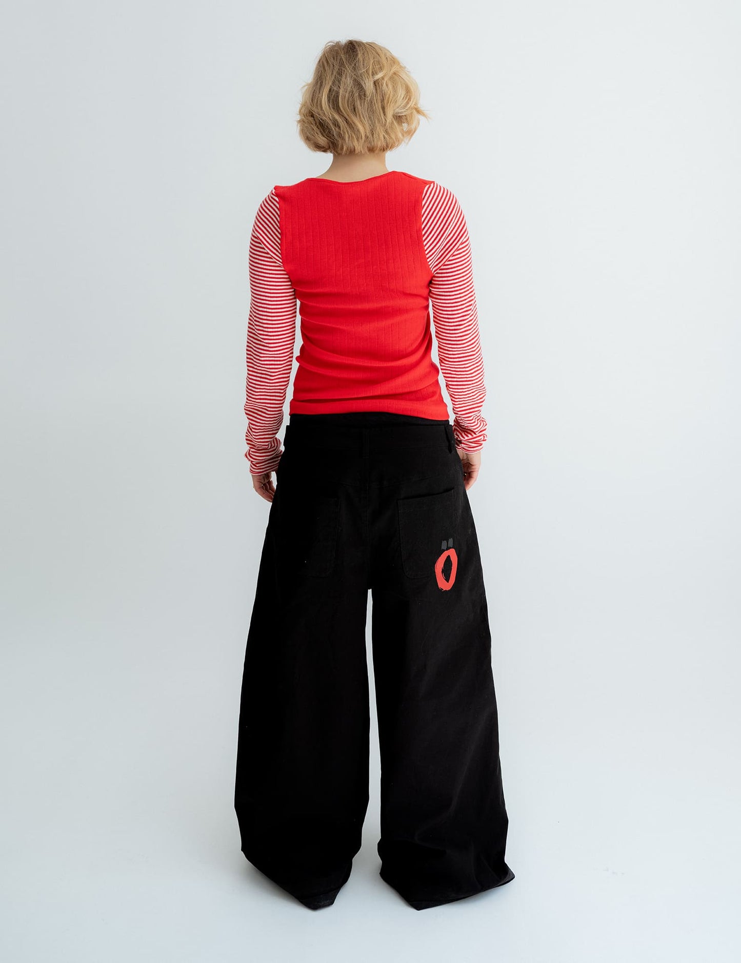 Nørgaard x ÖHOUSE Nabia bukserne i sort er løstsiddende jeans skåret i en baggy, bredbenet og low-rise pasform. Jeansene har for- og baglommer for funktionalitet. Baglommen har et trykt ÖHOUSE-logo, der skiller sig ud og tilføjer farve til det klassiske look.