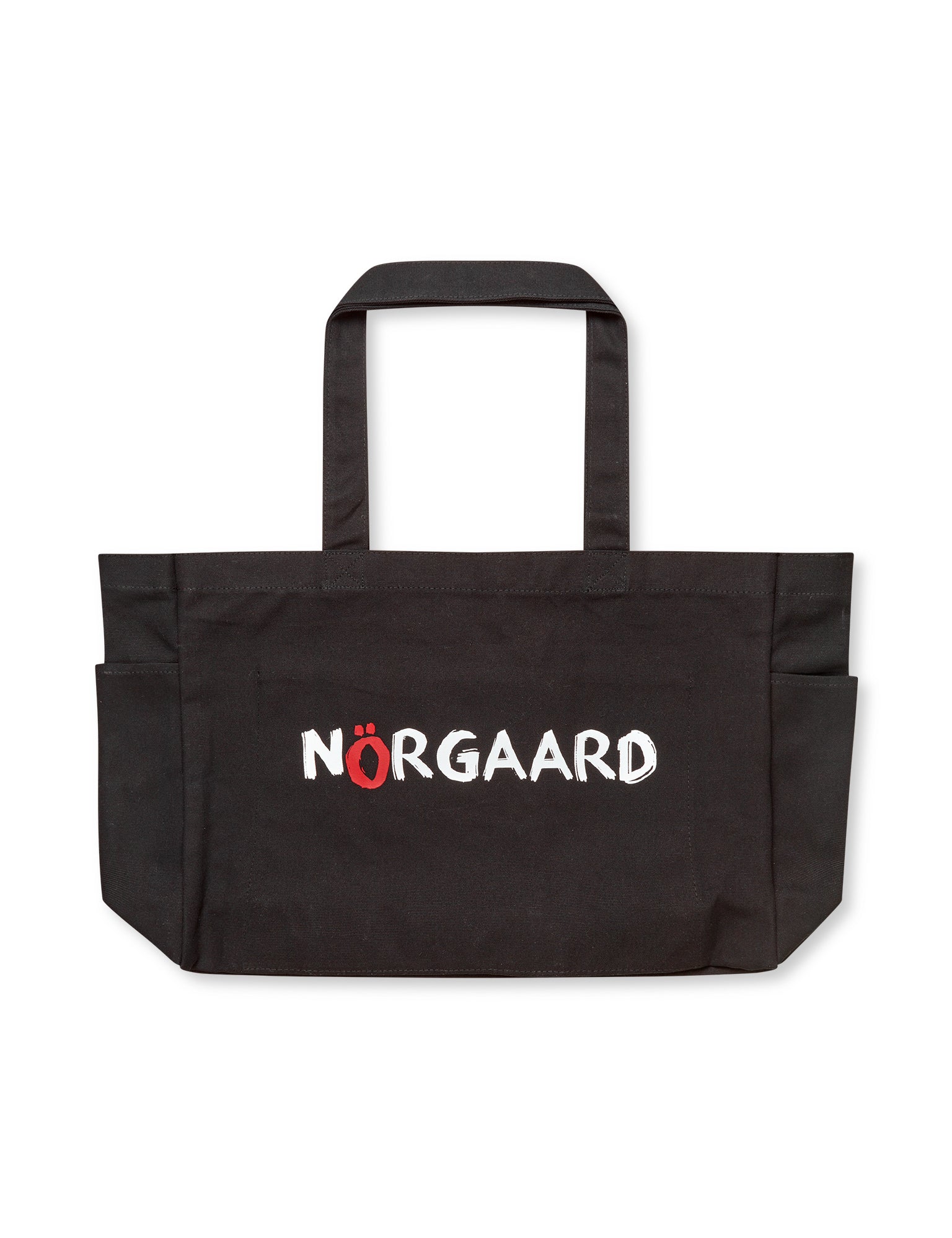 Nørgaard x ÖHOUSE Nasdak Totebag er en rummelig hverdagstaske lavet i sort bomuldscanvas. Den har to hanke, god indvendig plads og to praktiske sidelommer til nem adgang til dine mindre ejendele. På fronten er tasken trykt med det hvide og røde Mads Nørgaard x ÖHOUSE-logo.